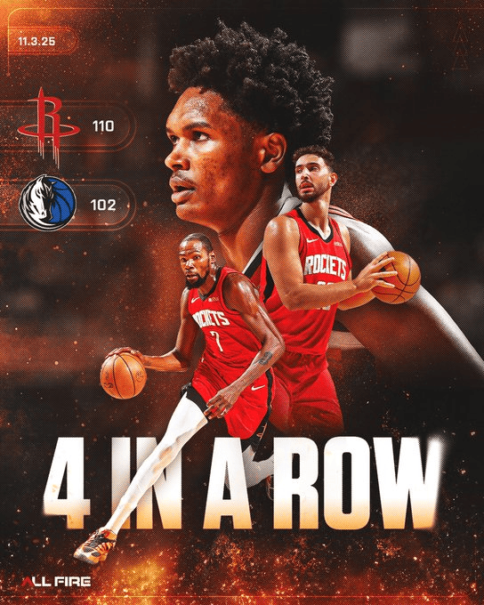 高歌猛进!火箭官方晒三巨头海报庆祝球队取得4连胜