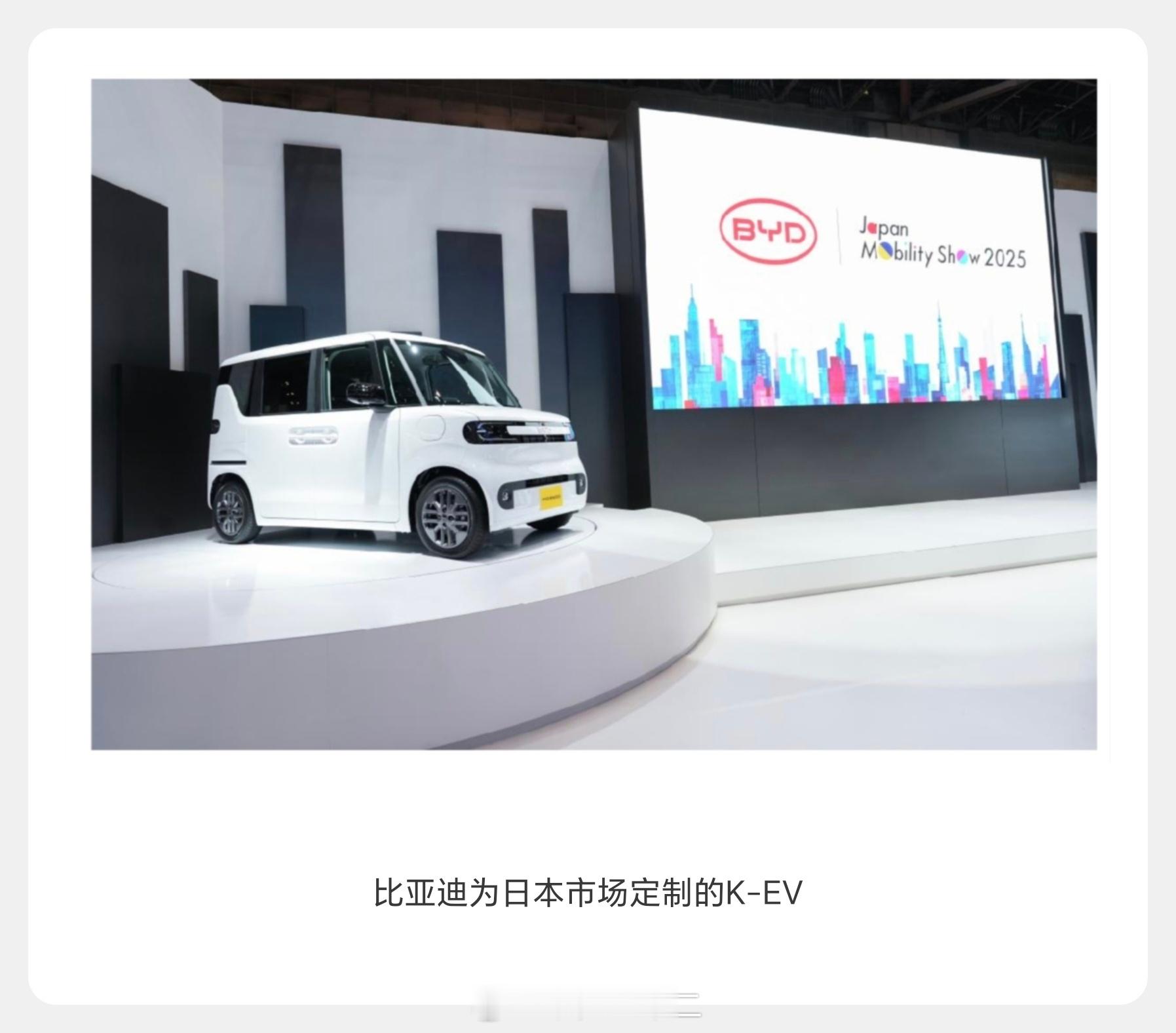 3、日本市场其实一直比较封闭,除了它的宗主国,能啃下日本市场的,都是需要拿出真本事的,也真练本事,这次比亚迪在东京车展上针对日本市场推出K-EV这个产品,就是尝试着去深度理解日本社会的需求,通过做符合该社会的定制化方案,来获得当地社会的青睐,这是企业国际化开拓的新阶段,深入,下沉,融入,最终成为受当地社会信赖的品牌。