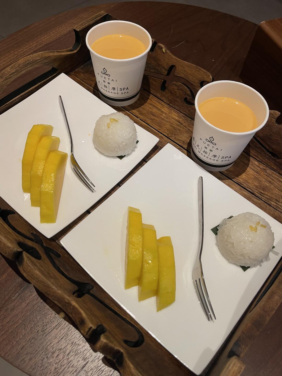 高强度工作结束后非常疲倦 在网上提前预约了菩泰spa 就在江宸天街4楼 这里环境很nice 服务非常贴心 还有芒果糯米饭 小吃水果 泡脚结束后就会安排房间spa 我选的的是泰式古法按摩 大动作拉伸真的太酸爽~ 整体来说体验非常棒 下次还会再来 菩泰• 正宗泰式古方按摩
