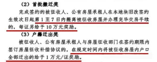 搬迁奖励同样分阶段实施:自地块旧改签约生效次日起,前15天内搬离的,按建筑面积提供每平方米4000元奖励,不足16万元每证按16万元每证奖励;