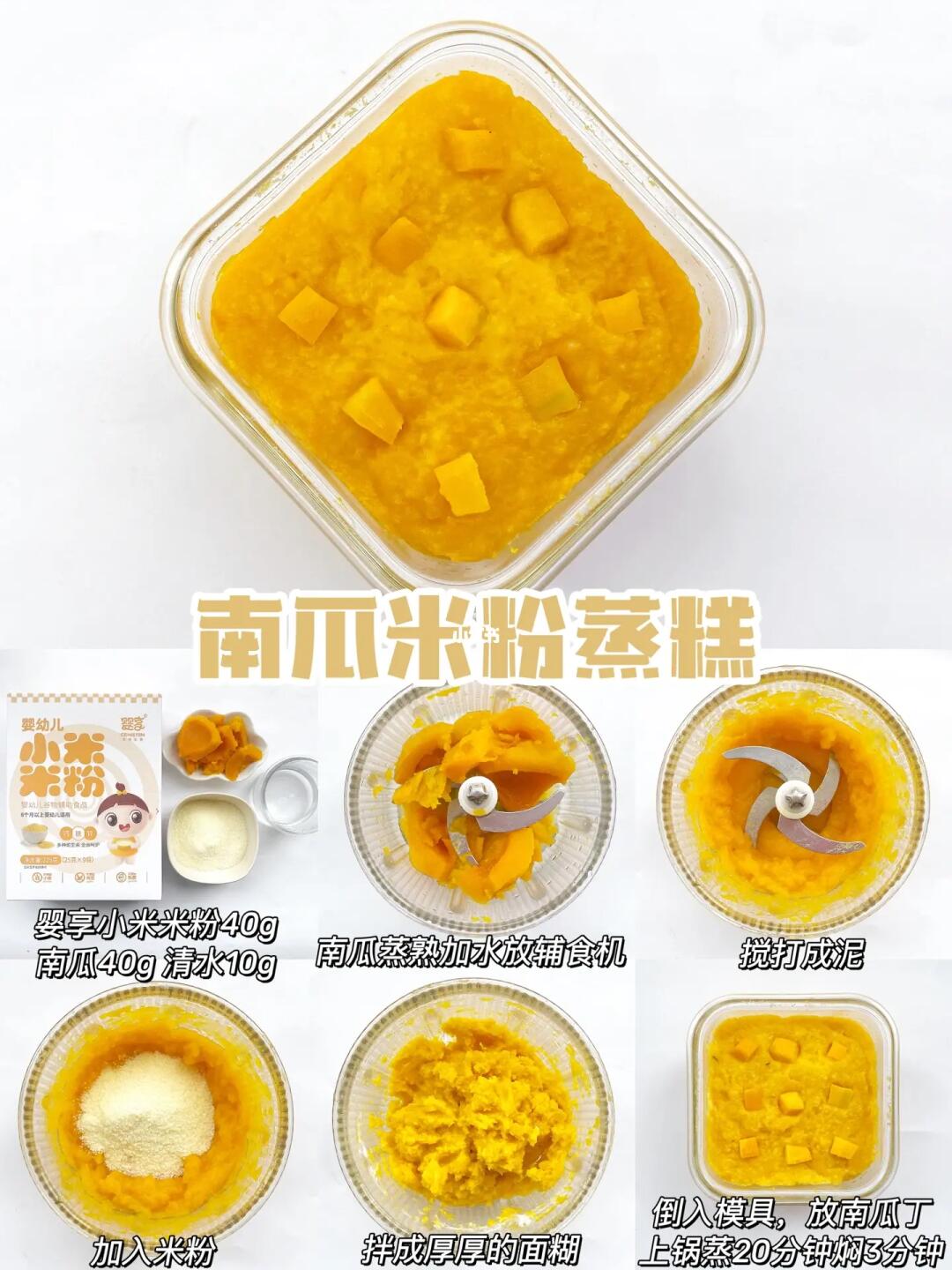 ▪️食材:南瓜40g(南瓜蒸熟加清水约10g打成泥)、婴享小米米粉40g