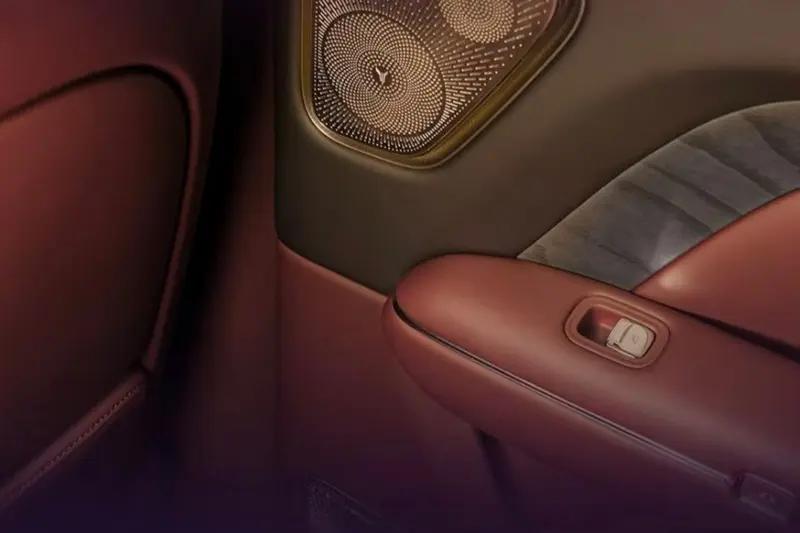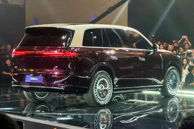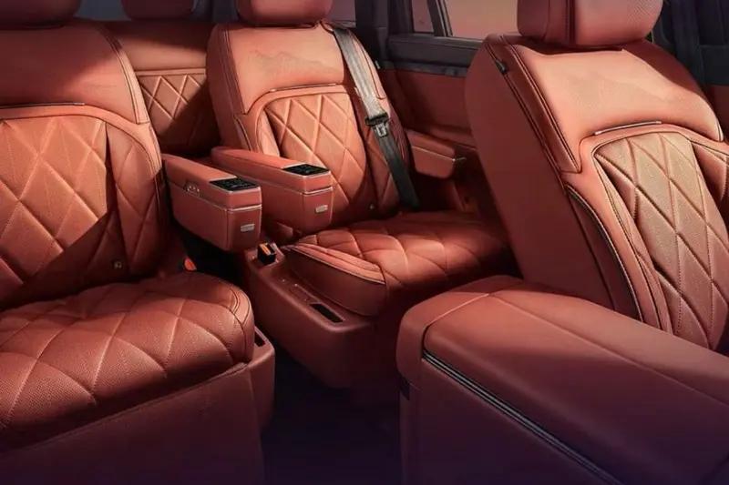 侧面来看,新车拥有修长流畅的车身线条,采用22寸超大电镀带悬浮徽标轮毂。车身尺寸方面,新车长宽高为5230/2025/1817(mm),轴距为3120mm,定位一款全尺寸SUV。
