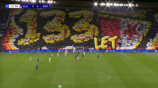 直播吧11月05日讯欧冠阿森纳vs布拉格斯拉维亚,斯拉维亚本周庆祝建队133周年,球迷展示巨型tifo。