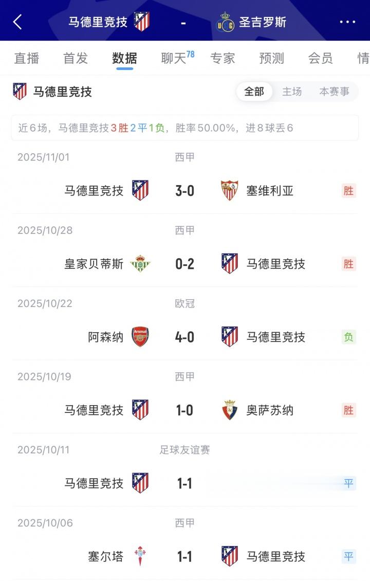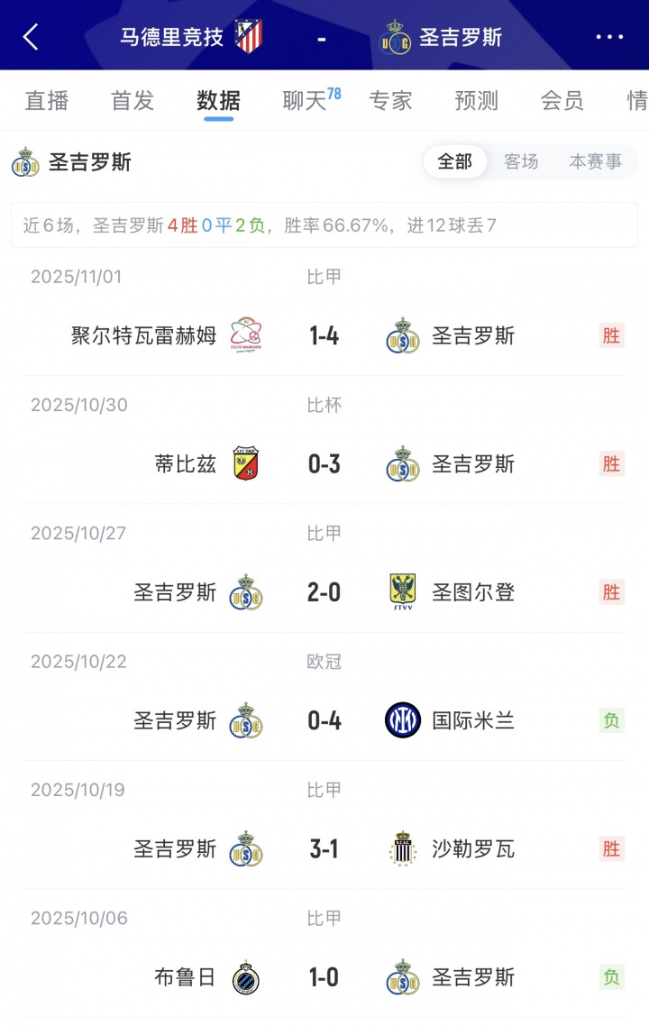 欧冠前3轮,马竞1胜2负,上一轮0-4惨败阿森纳;圣吉罗斯1胜1负,上一轮上一轮0-4惨败国际米兰!