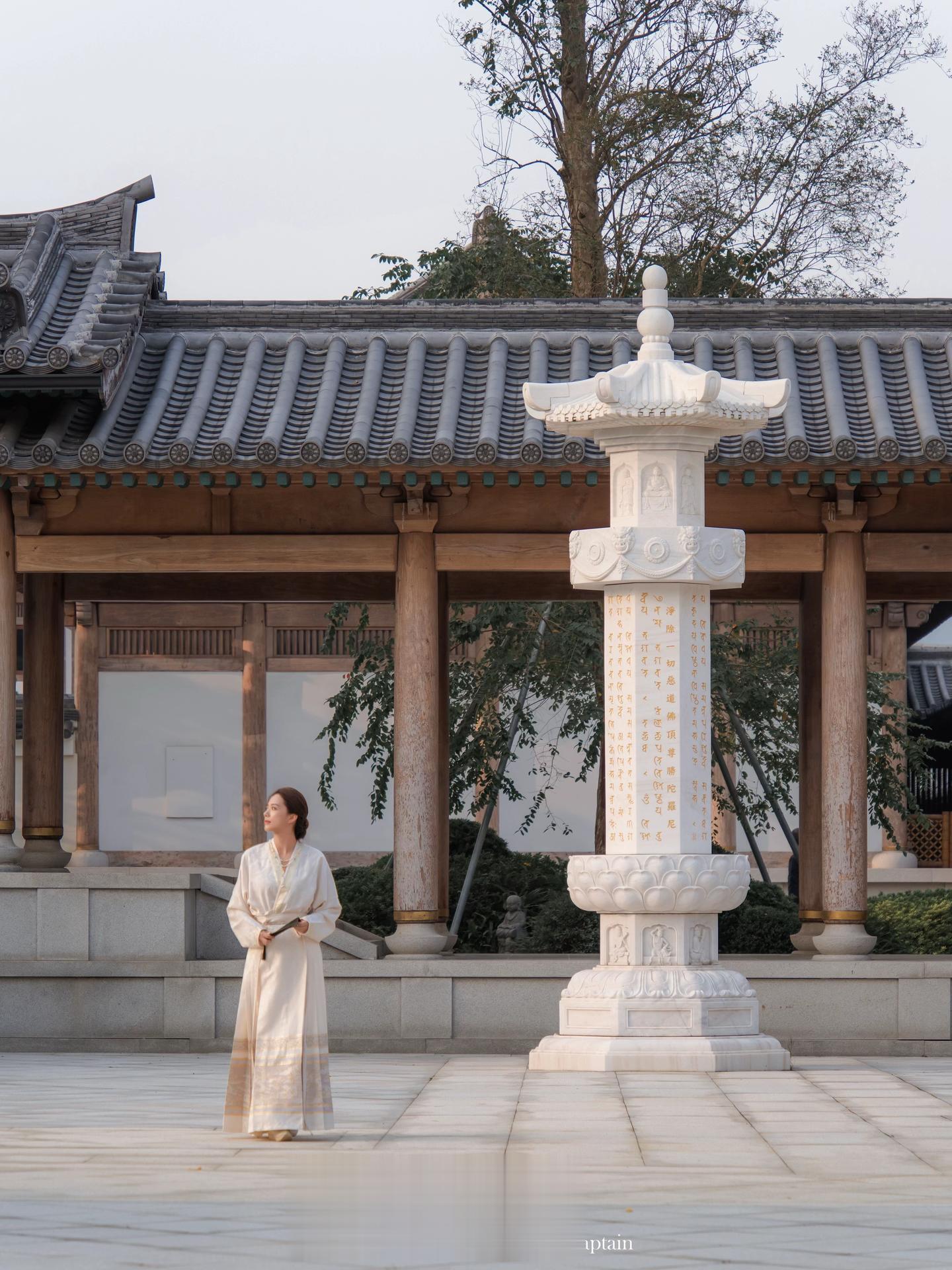 秋日禅意!白裙踏古寺美到心巴!秋日宁海广德寺,飞檐映银杏,一袭白马面裙踏风而来。美女姐姐的温婉藏在褶裥里,禅意融在眉眼间,古寺的静谧与马面裙的古韵撞了个满怀。 不慌不忙,在唐宋风长廊定格时光,白裙衬着黛瓦,每帧都是岁月沉淀的美。原来优雅,从不会被年龄定义。