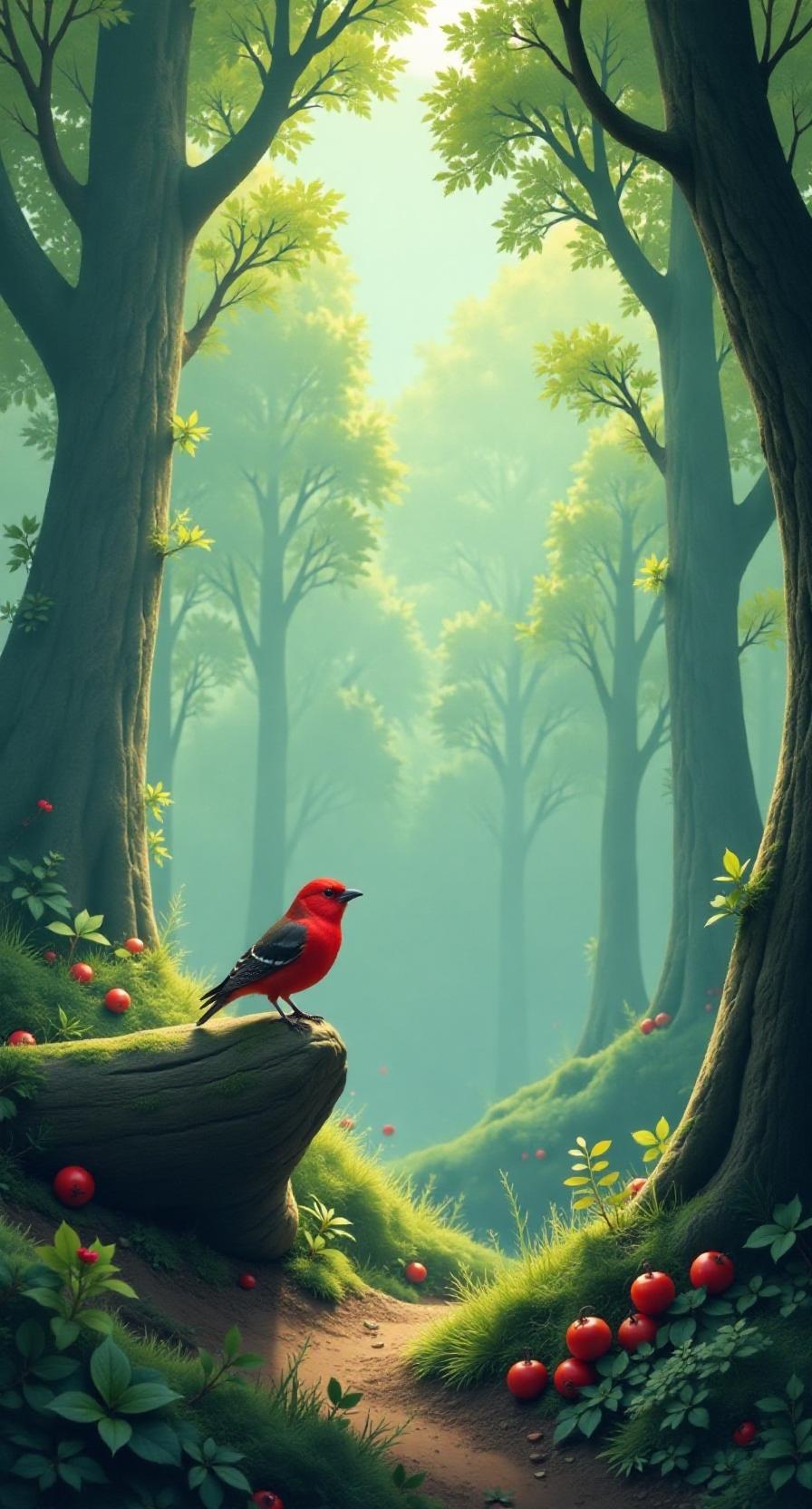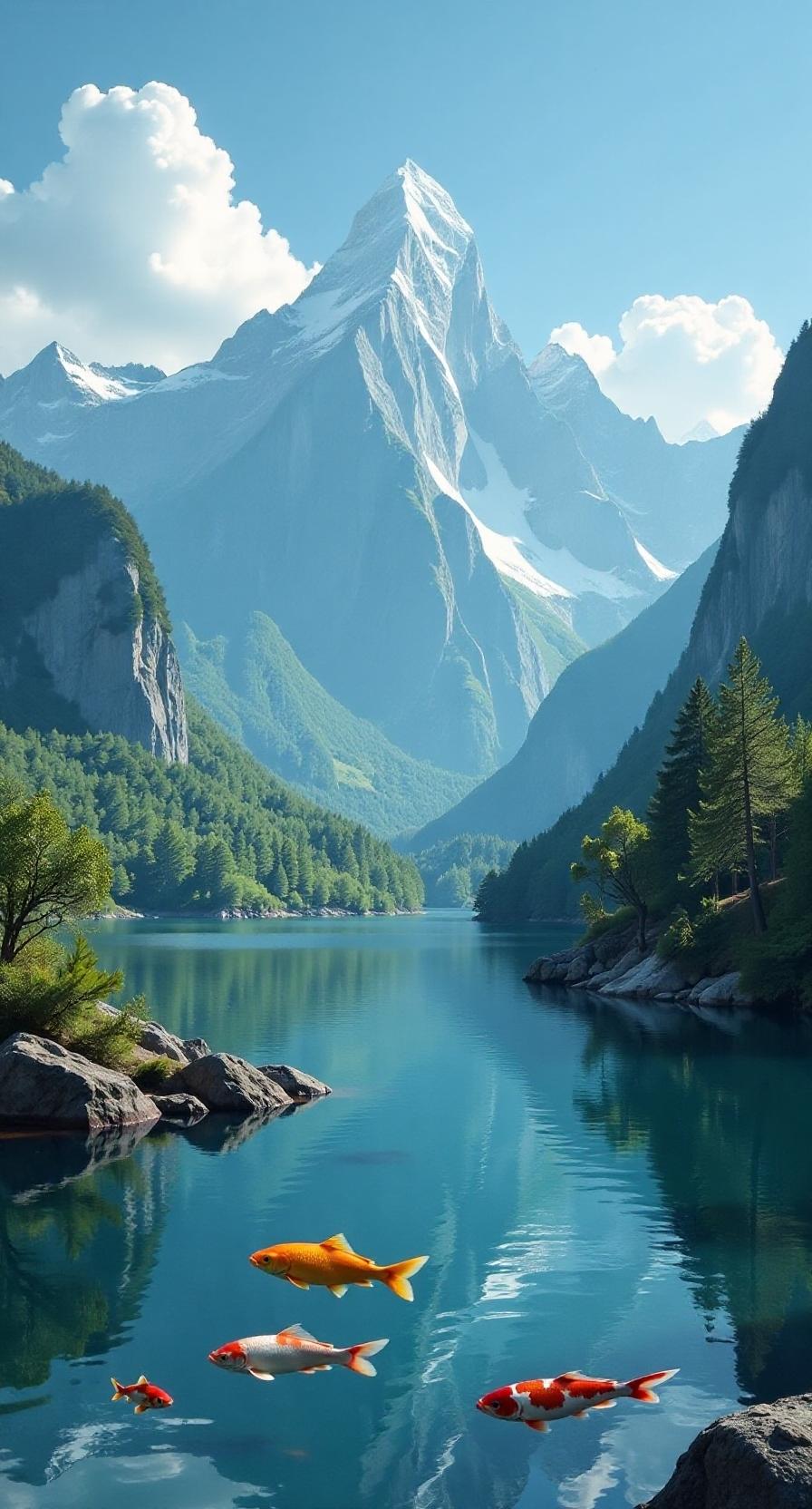 上联:山溪水涨潭鱼跃;白云邀对。下联:林间鸟鸣林果香;青松伴对。