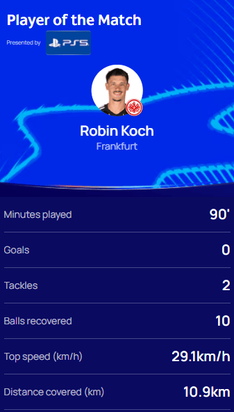 赛后,他也被欧足联技术小组评选为本场比赛的全场最佳球员。
