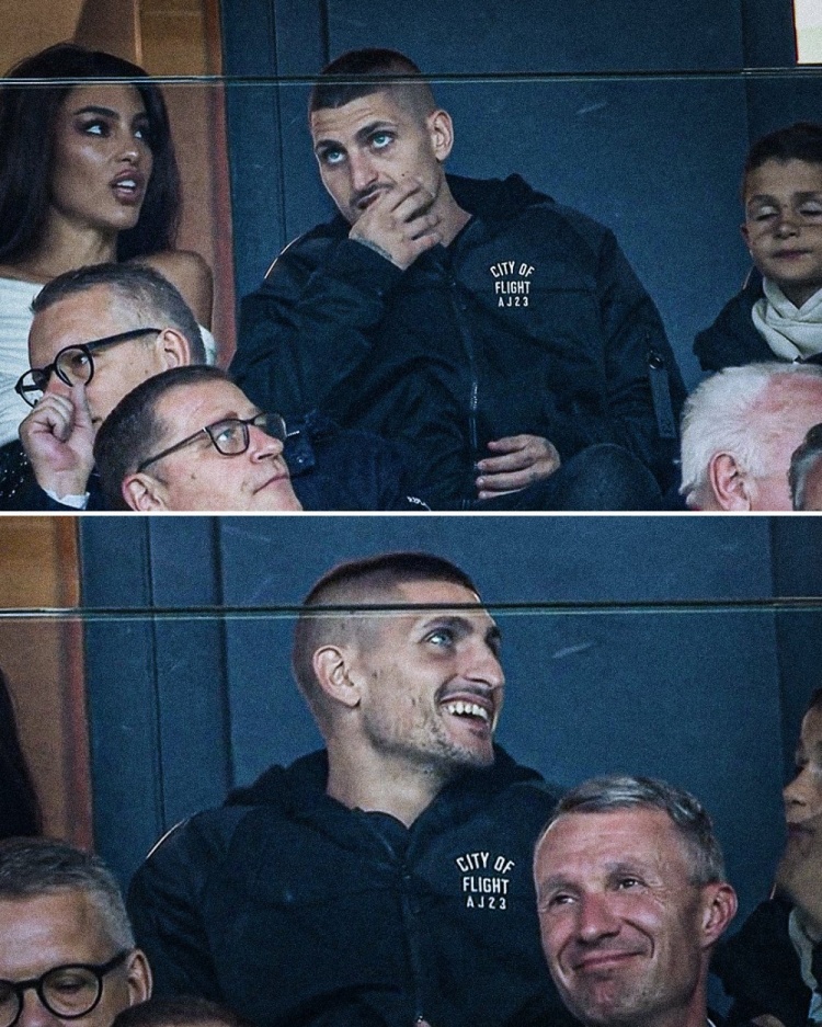 法甲官方社媒晒出照片,维拉蒂回到王子公园球场,现场观看老东家巴黎的这场比赛。