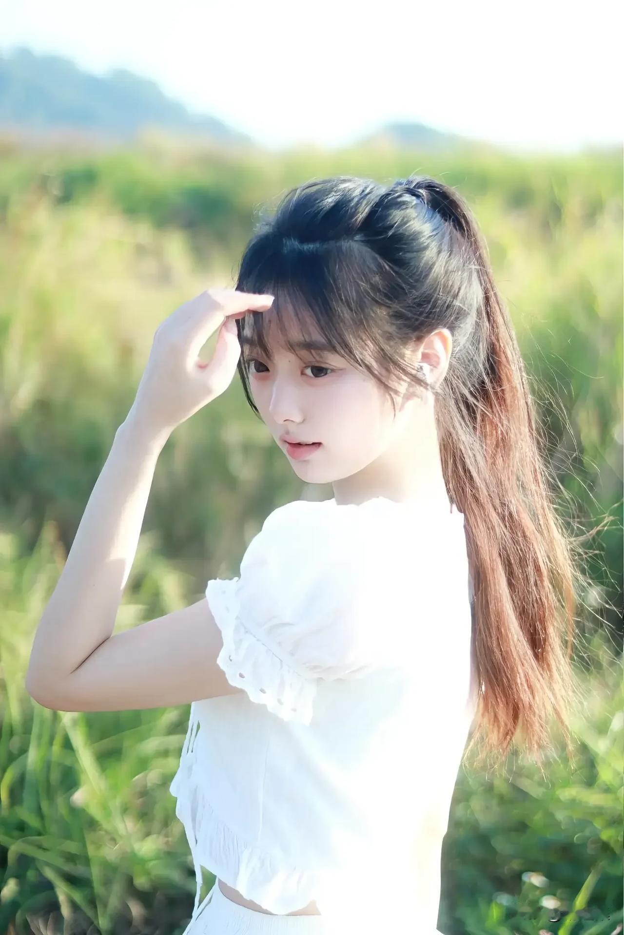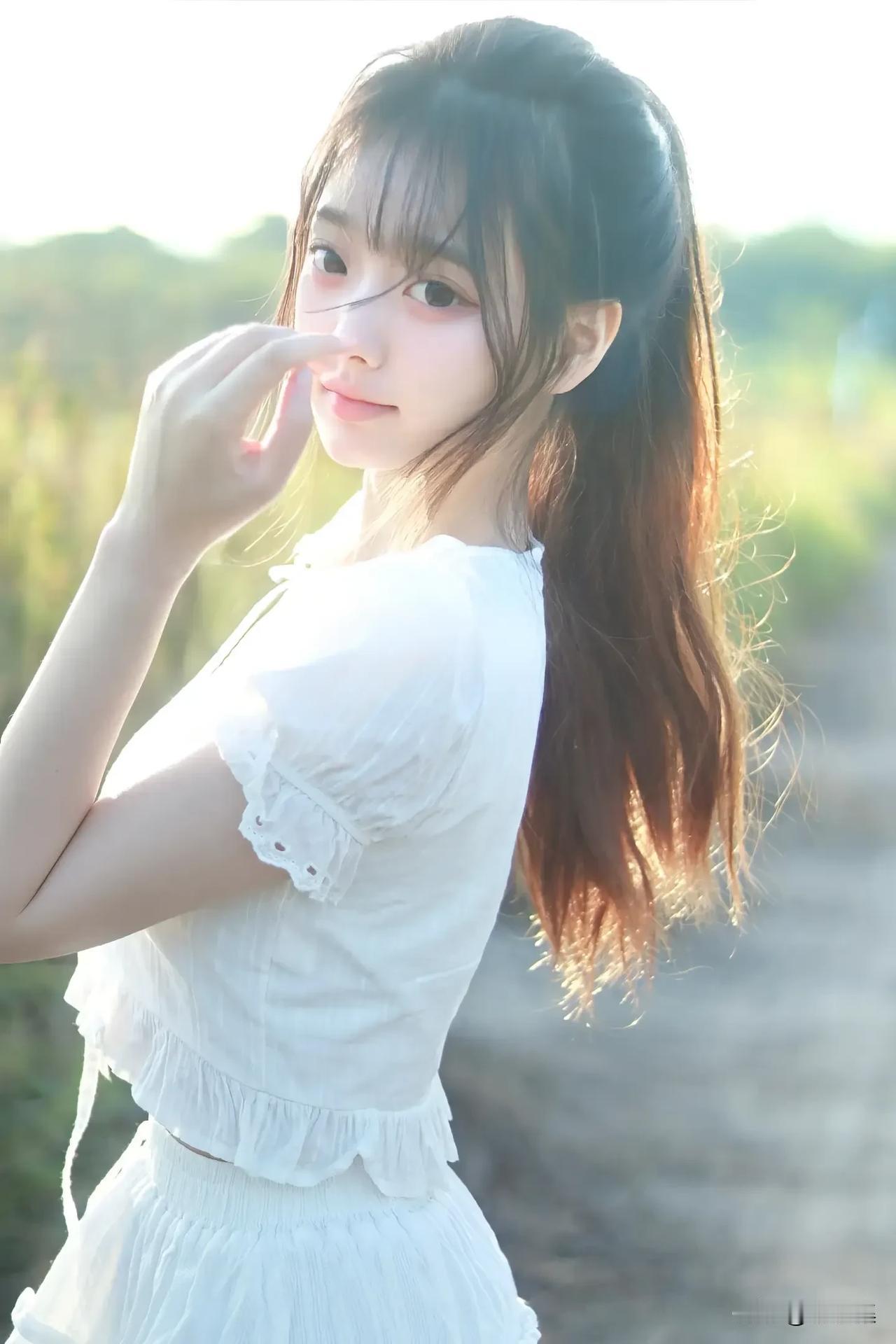 阳光下的白裙少女,温柔微笑,宛如童话中的公主。🌞👗💖