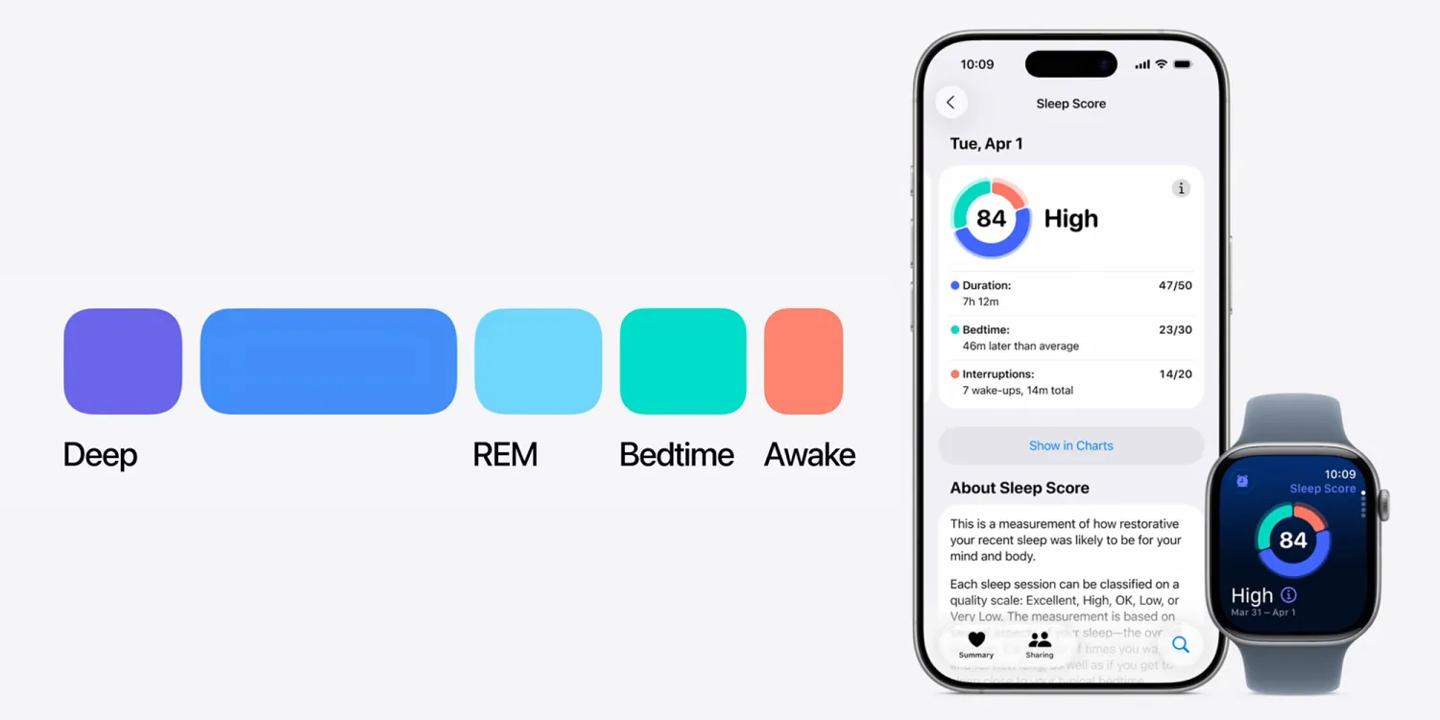 IT之家注:“睡眠分数”(SleepScore)是AppleWatch上的一项健康功能,它通过分析你的睡眠时长、规律性和中断情况,给你一个0到100的分数,用来量化你前一晚的睡眠恢复效果。分数越高,代表睡眠质量可能越好。