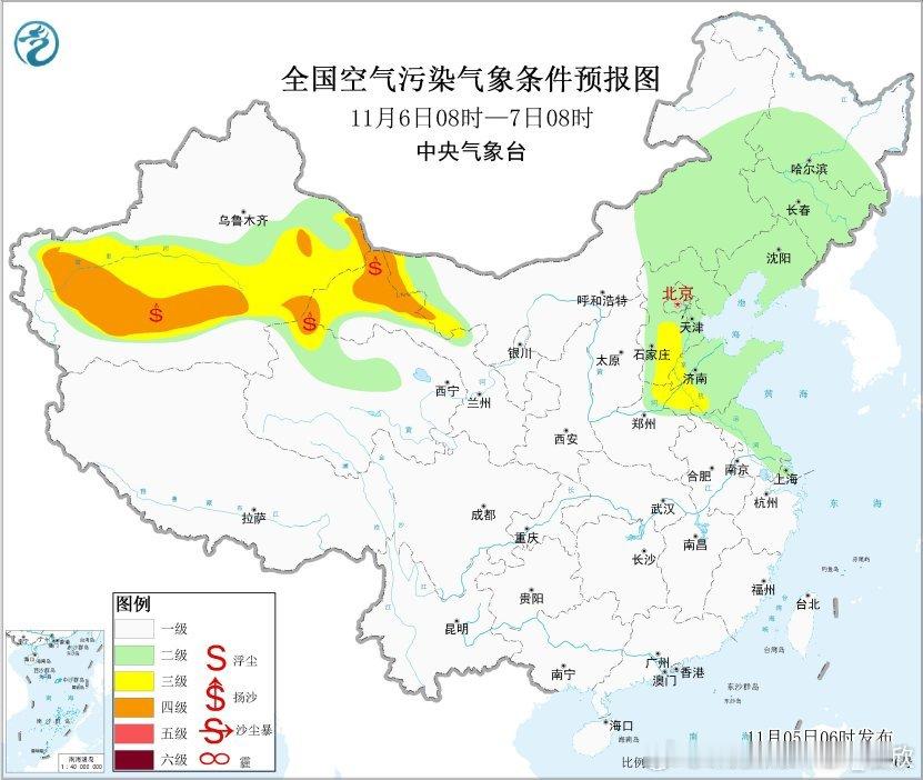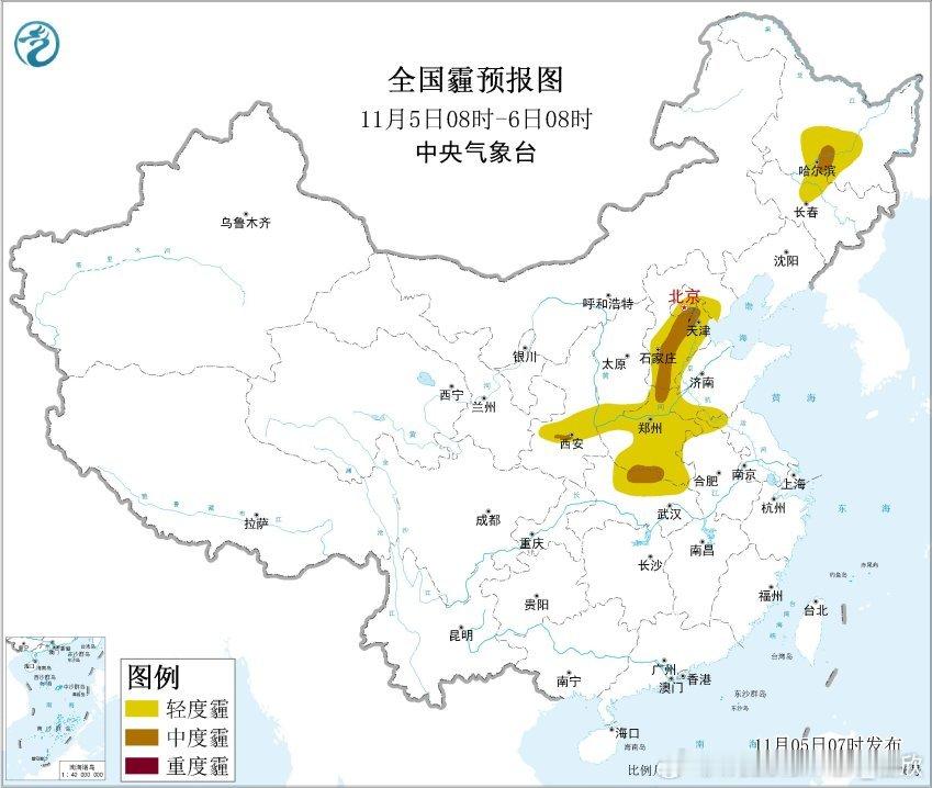 今天白天雾减弱消散,霾还会持续。明晨辽宁、京津冀、山东、江苏、浙江等地可能还有雾。而且华北一带,还会是雾和霾混杂。后天冷暖空气交汇的降水逐渐铺开,污染物将被清除,后续还有冷空气的西北风,利于大气扩散条件转好。但冷空气也会使得新疆东部和南部、甘肃西部、内蒙古西部出现沙尘。