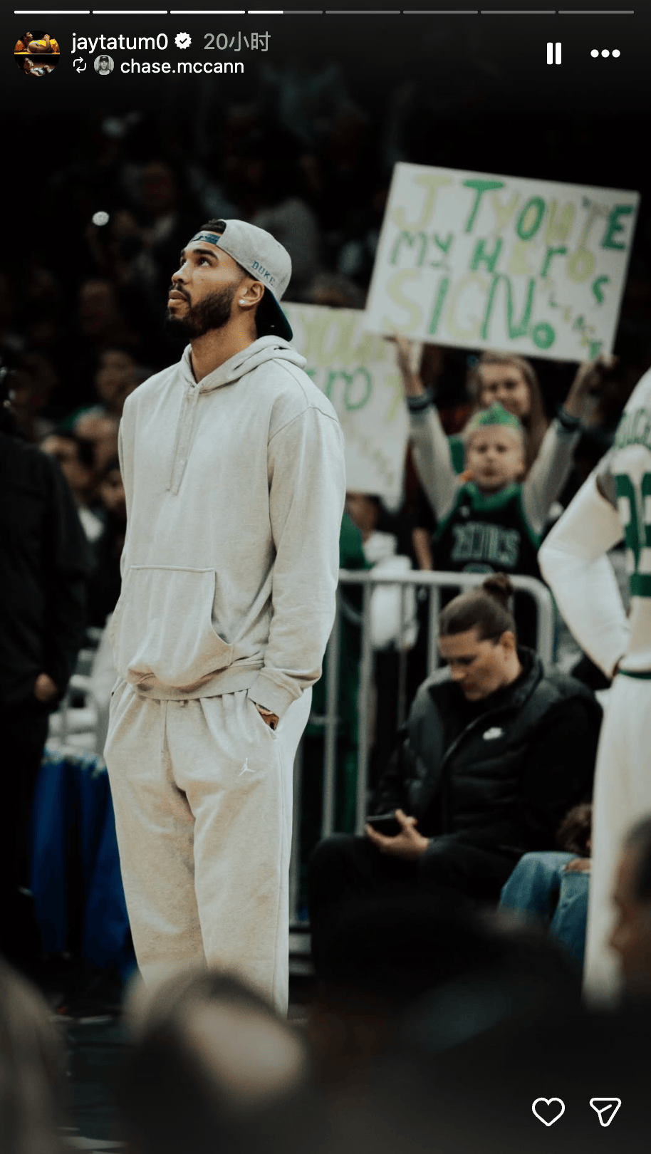 根据之前报道,塔图姆目前仍然处于跟腱伤病恢复中,不过他没有排除本赛季复出的可能。