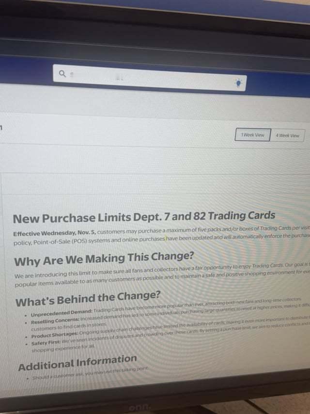 据沃尔玛官方页面流出的内部备忘录,新政策涵盖所有宝可梦相关商品,包括补充包、卡盒及其他集换式卡牌产品。备忘录措辞显示,限制措施或将适用于所有类型的集换式卡牌,而不仅限于宝可梦系列。