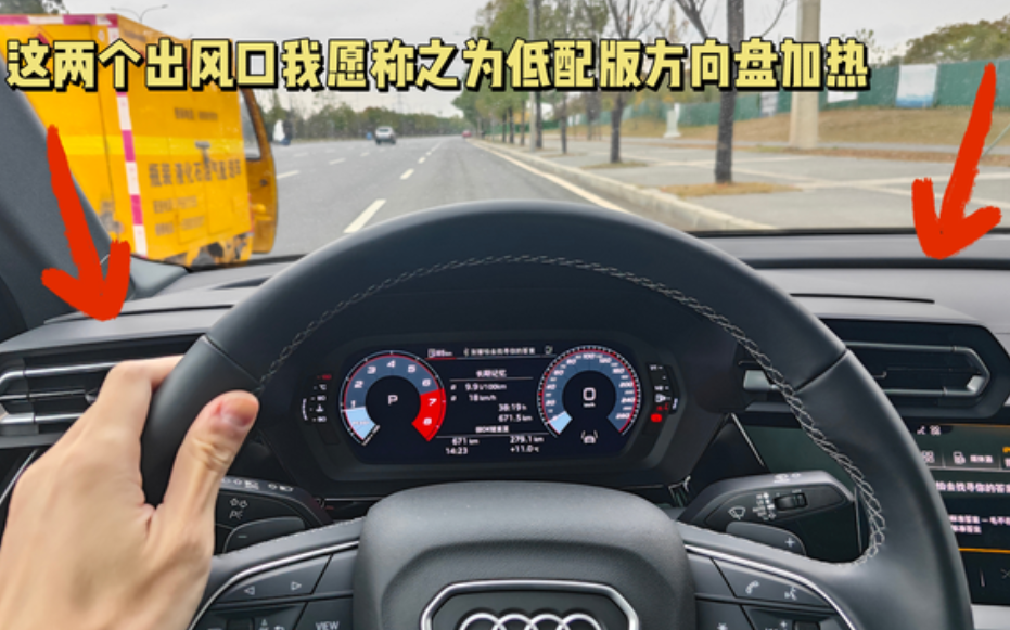 🚗智能化体验 这个车的智能化基本可以说没有了,毕竟还是老一套的车机系统,不过也说说实际体验到的座舱感受吧。 1⃣️按键反馈声好清脆,跟摸了钢琴一样,只是如果有人在睡觉的吧按几个按键可能会把人吵醒,因为太清脆了。 2⃣️虽然车机不好用,但是好就好在保留了Carplay,苹果手机是可以直接互联的,地图导航和音乐就可以很方便设置了。 3⃣️空调反应是真慢,现在冬天了水温上来要太久了,尊享又没有座椅加热方向盘加热这些,刚坐进来是真的冻人。不过!我发现了一个惊人的设计,就是A3把主驾驶的空调出风口放在了仪表盘两侧很高的位置,你把出风口对准方向盘吹,一下子手就暖和了!这么说方向盘加热可以不用,立省2500。 尊享也有倒车影像,但是真的太模糊了,而且形变严重非常影响判断,一定要结合后视镜。 4⃣️侧向预警很好用,A3的侧向预警不是镜子上的而是在耳罩的,一个菱形格子面积非常大,侧向有车或者行人都会亮起,面积大而且比较靠内,所以我基本不用扭头就能注意到侧向预警了,警示的效果比在后视镜上要明显多了。 5⃣️车道偏移也非常OK,很多车的车道偏移就给我一种硬拽的感觉,就是偏了就大力扭动方向盘,经常会被车道偏离吓一跳,但是A3的就很柔和,它发现偏离之后的力道是缓慢增加的,而且手只要一控制方向盘,车自己给的纠偏助力就会消失,很少车能够做到这种给人纠正又不吓一跳的。