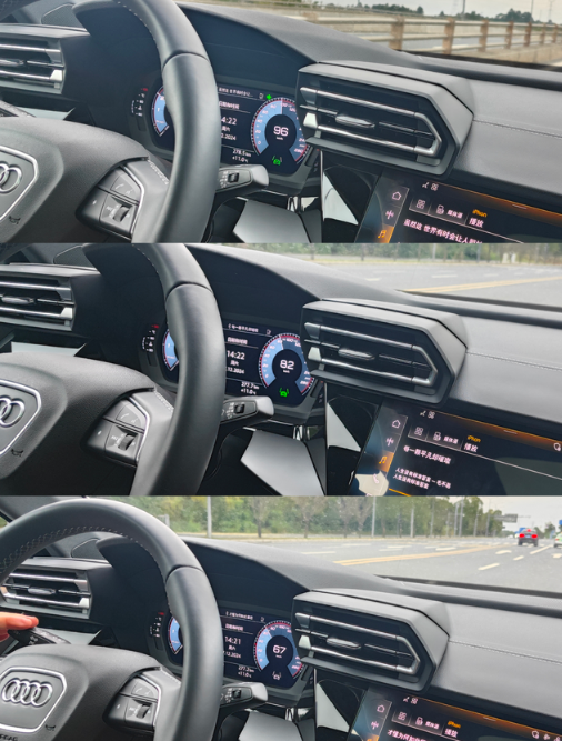 🚗隔音 1⃣️因为我本身开混动车就习惯了那种静谧,开A3主要是发动机声音和胎噪,发动机声音确实明显,尤其是深油门的时候,它的发动机不是那种低沉闷骚的,而是很响又很脆,真有硅油风扇那种味儿,深踩就会哒哒哒的,对我来说是悦耳,尤其是开S挡的时候,很有速度与激情那种感觉。 2⃣️胎噪是真的差,低速的时候基本都是沙沙的胎噪声,速度到了80那个胎噪声太吵耳朵了,非常明显,基本已经到了音乐要开大声才能掩盖过去的那种情况。而风噪就要好太多了,也不知道是不是因为胎噪太大被掩盖了,基本在80速度一下都没有风声,不过速度上来了尤其达到90,最明显的就是A柱两侧的风声,无论是驾驶位还是副驾我都能听到A柱的风噪声,但跟胎噪比可以说是小巫见大巫了。