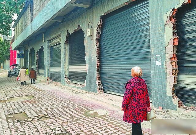 柏林春天小区临街墙体被拆除后,露出里面的卷帘门(摄于11月4日)