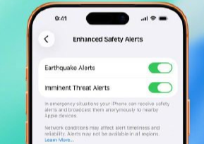 在“增强型安全警报”菜单内,苹果提供了两个核心的开关选项:“地震警报”(Earthquakealerts)和“紧急威胁警报”(Imminentthreatalerts)。用户可以根据自身需求,灵活选择开启或关闭。