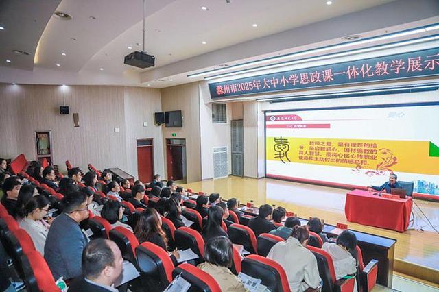 为推进大中小学思政课一体化改革创新,深化教学内涵建设,11月3日,滁州城市职业学院举办滁州市2025年大中小学思政课一体化教学展示活动。本次活动由滁州市委教体工委主办、滁州城市职业学院承办、滁州市大中小学思政课一体化共同体协办,特邀南京城市职业学院思政教育同仁助力,滁州市大中小学思政课一体化建设指导委员会专家委员和全市大中小学的60余位思政课教师全程参加活动,共探思政课育人新路径。