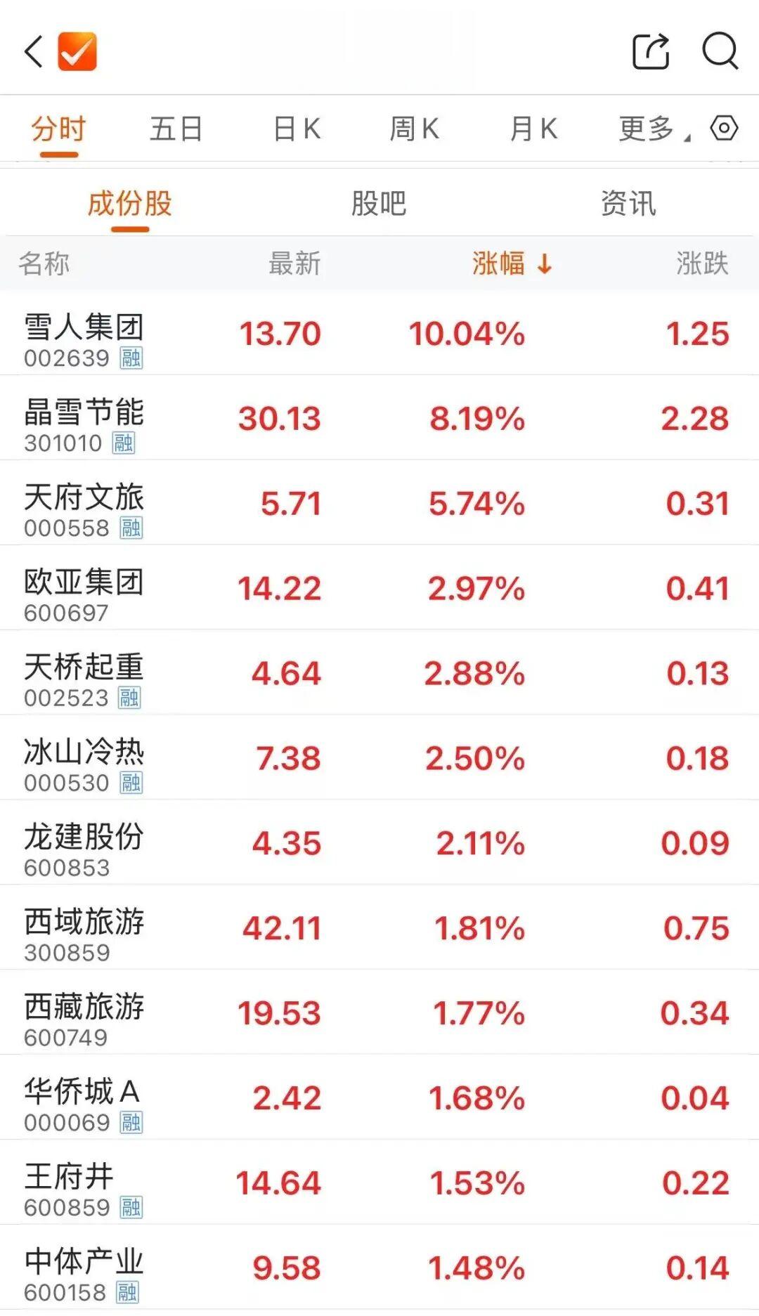 冰雪经济逆势上涨,截至发稿,雪人集团2连板,晶雪节能涨超8%,天府文旅、冰山冷热等跟涨。