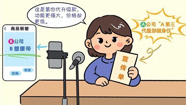 2023年4月,A公司发现,C公司的主播在介绍B公司的“B塑腰带”时,声称“这是第四代升级款,功能更强大,价格却更低”。直播过程中,主播手中拿着A公司“A第三代腹部健身仪”的宣传单,而橱窗展示的却是B公司商品的链接。A公司认为,C公司主播曾为其直播推广过“A第三代腹部健身仪”,主播此番行为极易让消费者产生误解,认为B公司的“B塑腰带”是A公司产品的升级或改进版本。