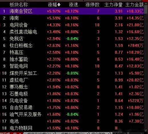 智能电网上涨的逻辑是美帝缺电,电网改造需求提升,近10股涨停,特变电工3天2板,创出历史新高;海南板块继续走高;煤炭、油气概念涨幅居前;