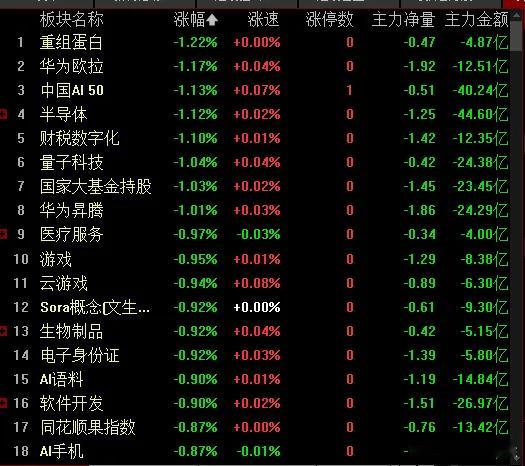 量子科技、半导体,游戏等概念跌幅居前;