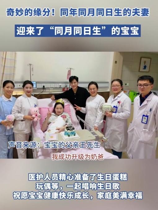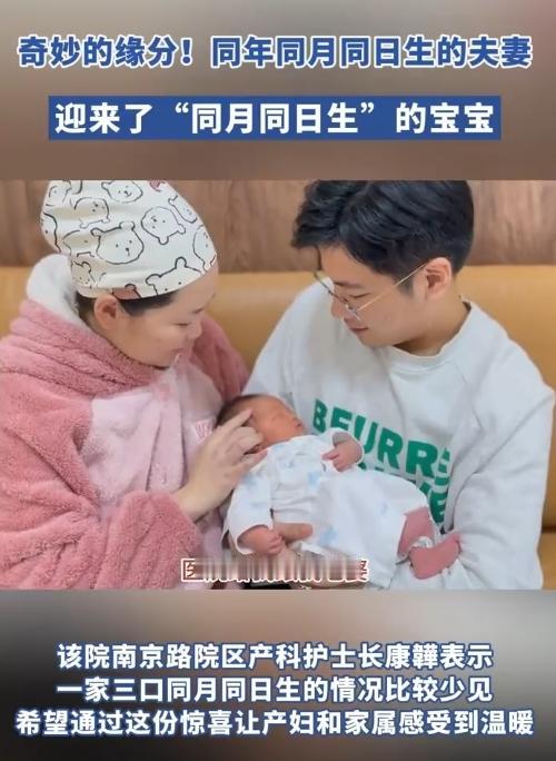 神仙缘分!武汉夫妻生日当天生娃,一家三口同月同日生! 天呐!10月30日湖北武汉上演"复制粘贴的缘分":熊女士和王先生这对同年同月同日生的小夫妻,在28岁生日当天剖腹产下女婴,全家喜提"同一天生日"成就! 去年通过网络相识时,两人发现彼此生日相同已觉奇妙,没想到今年又在产房创造奇迹。医生笑着调侃:"这是我见过最会挑日子的宝宝!"更绝的是,宝宝出生时间比妈妈晚半小时,网友笑称:"这是踩着点给爸妈送生日礼物呢!" 这场"撞生日"大戏让全网酸成柠檬精:"撒狗粮都撒到产房了!""建议直接申请吉尼斯纪录!"有命理师解读:"这是百年难遇的'三星连珠'格局,全家福气值拉满!"当事人则透露早已规划好未来:"以后每年生日都能收三份蛋糕,想想就幸福!" 最甜的是产房外那幕:王先生举着手机记录妻子生产过程,突然发现日期与自己生日重合,激动得手直抖。网友直呼:"这哪是生孩子,分明是在撒狗粮天花板!" 你见过最神奇的缘分是什么?评论区聊聊!转发沾沾这份神仙运气,说不定下一个同月同日生的就是你!这是什么奇妙缘分!