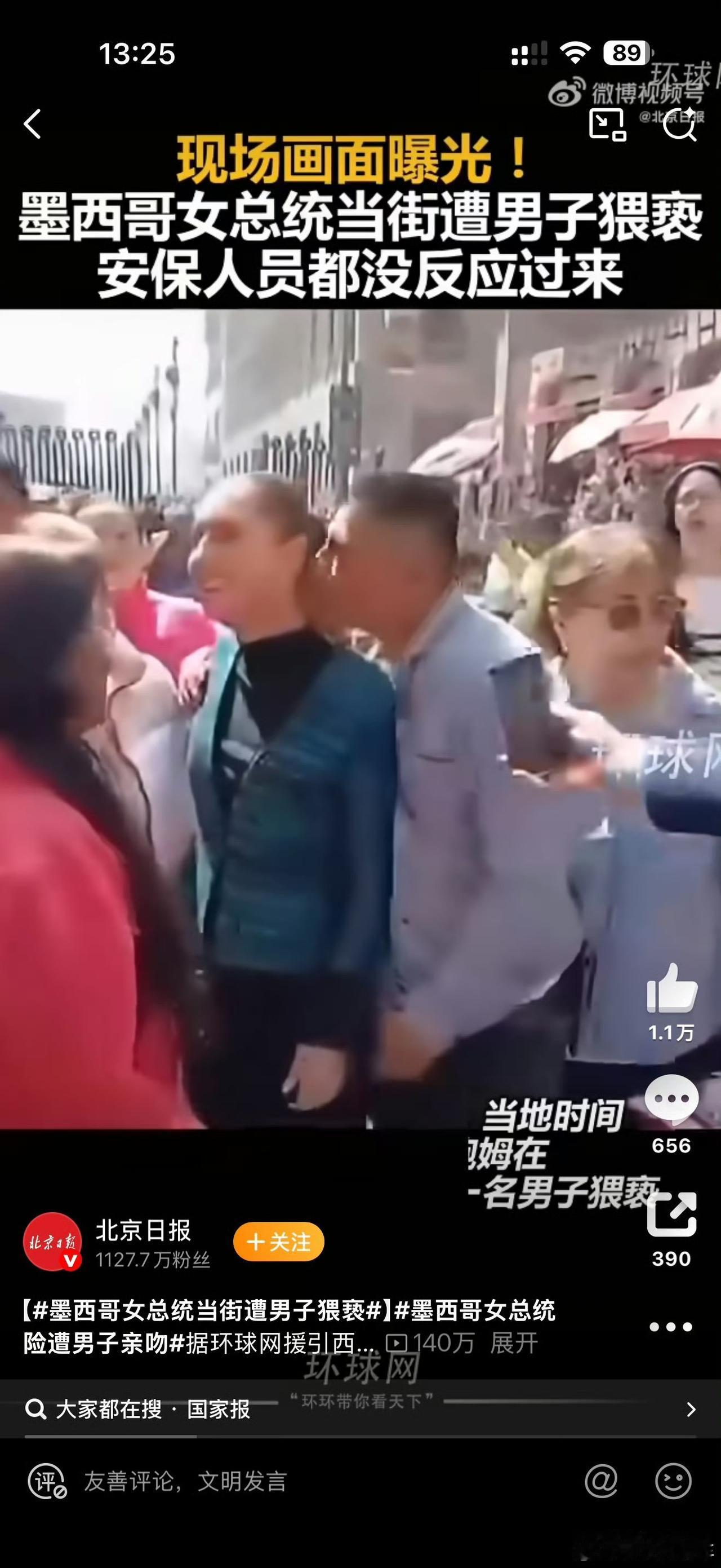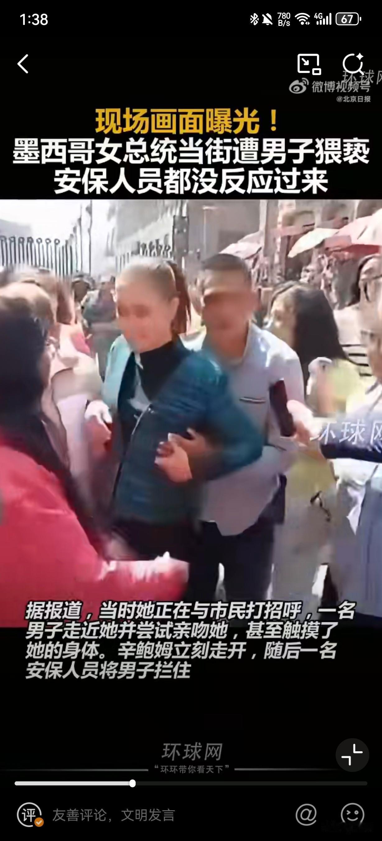 从来都是富贵险中求……当地时间2025年11月4日,墨西哥总统辛鲍姆在墨西哥城国家宫附近遭到一名男子猥亵 。 视频显示,当时辛鲍姆正在与市民打招呼,一名男子走近她,先是用手搭在她的肩上,随后试图亲吻她的耳垂,还把手伸到辛鲍姆的左胸前,触摸到了其胸部。辛鲍姆意识到后立即走开,这时一名安保人员才将该男子拦住 。 墨西哥总统办公室的消息人士证实了该事件,当时辛鲍姆刚刚参加完一场庆祝活动 。截至目前,该男子的身份尚在调查中,尚未有人被逮捕 。