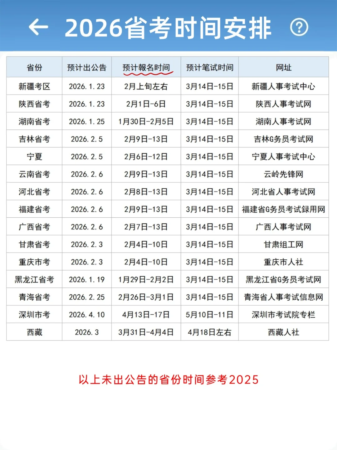 2026各省省考时间安排,新增天津!