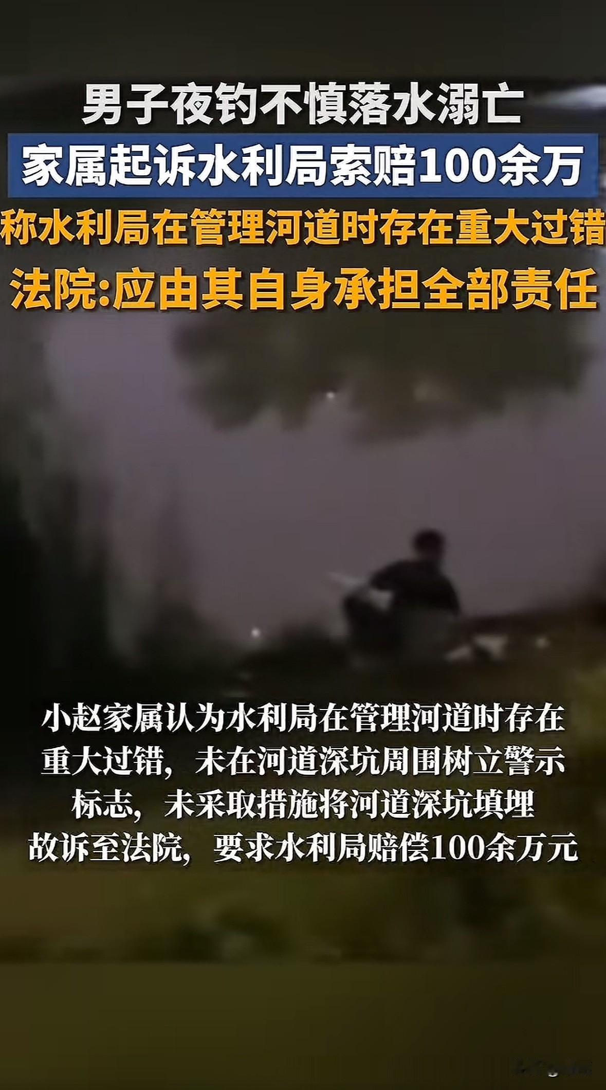 2024年9月27日0时,河南安阳小赵深夜去野外偏僻河道垂钓,不慎落水溺亡。家属认为水利局未设警示标志、未填埋深坑有管理过错,诉至法院索赔100余万元。 安阳市中级人民法院驳回了诉求。法院说这是天然开放式泄洪河道,水利局职责是保河堤稳固和行洪安全,法规没要求设安全设施和警示标识。小赵是完全民事行为能力人,深夜野钓属于自甘风险,自身过错导致悲剧。 成年人得对自己安全负责,野外偏僻水域本来就危险,深夜去野钓更是把风险放大。近期也有深夜野钓被困、被误当猎物枪击的事,别为了爱好忽视安全,平平安安才最重要。