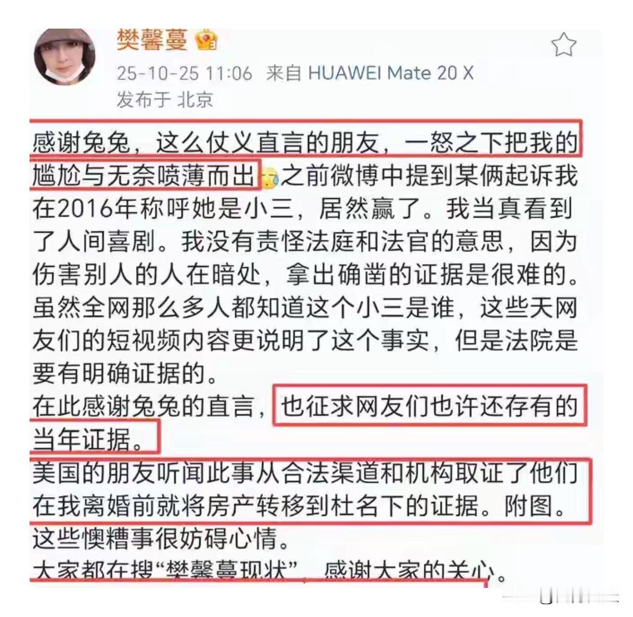 樊馨蔓有备而来,张纪中身陷财务风波 湖南美猴王影业公司指控张纪中涉嫌职务侵占,北京警方已受理报案。 樊馨蔓是湖南美猴王影业公司的法定代表人、董事长。 值得注意的是,樊馨蔓也是知名导演张纪中的前妻。根据天眼查信息,她所在的湖南美猴王影业有限公司成立于2010年6月。 在2025年11月,作为公司法定代表人的樊馨蔓,已代表湖南美猴王影业向公安机关报案,指控该公司董事、总经理张纪中涉嫌职务侵占。涉案金额八百多万。 2016年12月23号.张纪中与樊馨蔓两人离婚,距今离婚已近十年。 2017年3月5号,张纪中离婚两个月后再婚另娶了小他30岁年纪的杜星霖。 在2025年6月6号.张纪中个人账号发布了一条动态,照片里一家五口全家福,配文称:如尔所愿,永缄其口,合十祝福,各自安好。看呐,这阳光,甜得发腻。 2025年10月25号,张纪中前妻樊馨蔓发布微博,她旧事重提,怀疑张纪中在夫妻关系存续期间,对共同财产做了手脚,樊馨蔓因此向全网征集线索,希望找到知情人帮助提供证据。没想到,发文仅仅相隔十天,樊馨蔓已将手里收集到的证据提交给警方报案。 北京警方已受理。