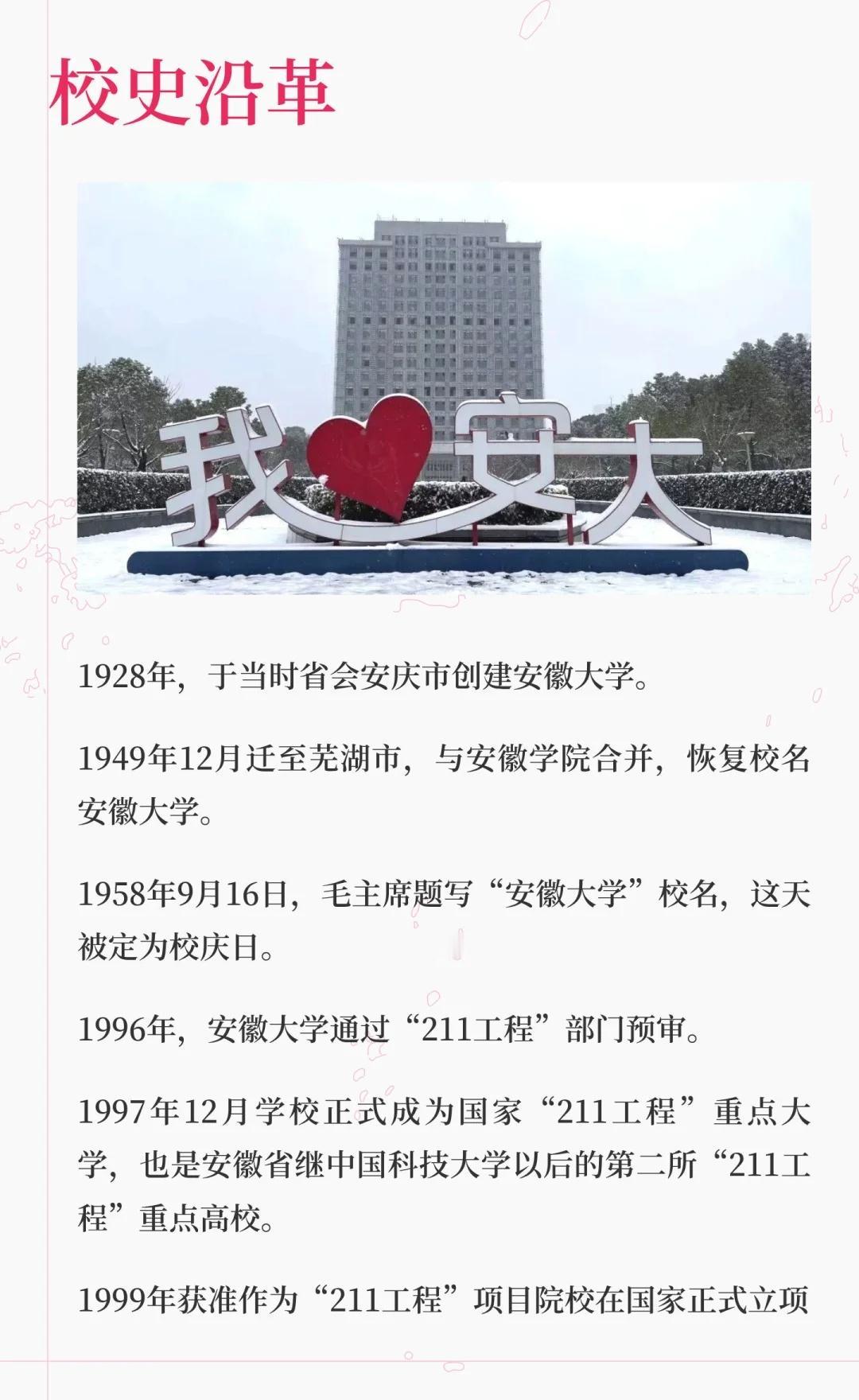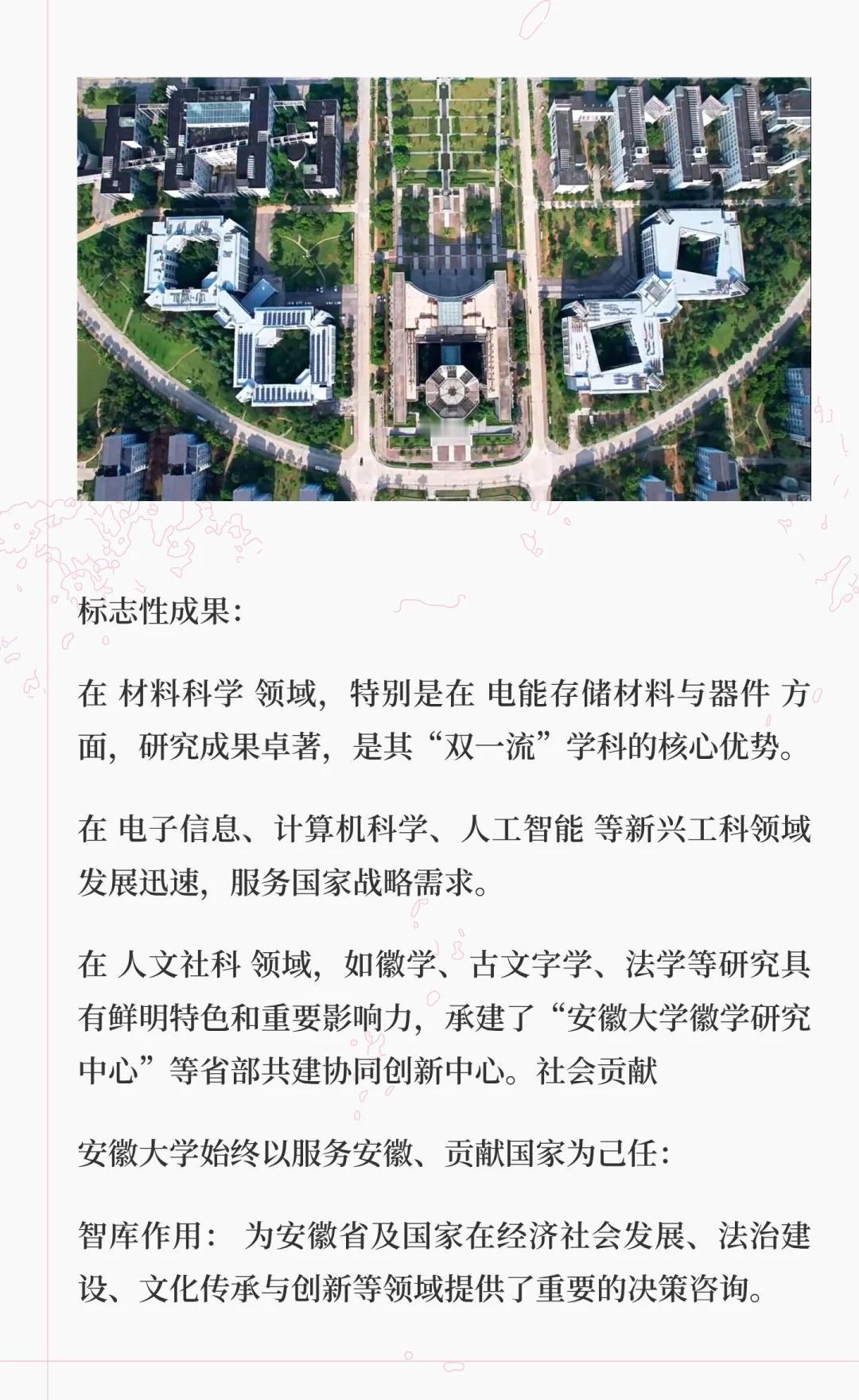 老陈说高校壹佰伍拾柒期之安徽大学 安徽大学是“双一流”建设高校,位于合肥,涵盖文理工等11个学科门类。拥有“集成电路先进材料与技术国家工程研究中心”等国家级平台,服务安徽和国家战略。高校 大学 院校规划 我的高质量大学 安徽大学 安徽大学生 院校选择 院校推荐