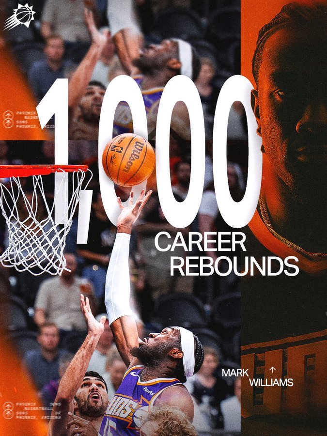 -马威 16 分 / 16 篮板 / 4 助攻 (达到生涯1000篮板)