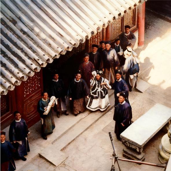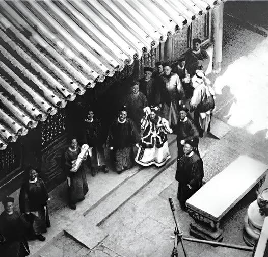 1900年八国联军攻占北京,慈禧携光绪仓皇逃往西安。1901年《辛丑条约》签订后,列强同意撤军,慈禧于1902年1月8日乘火车抵京郊马家堡,再经永定门、正阳门入宫,史称“两宫回銮”。这张照片便是回銮途中,在正阳门瓮城观音庙拈香时被外国摄影师抓拍的场景。 慈禧太后在太监与官员簇拥下完成拈香仪式。此时的她正抬头向城墙上围观的外国人挥手(据《我的北京花园》记载,慈禧曾用手帕向洋人致意),试图塑造“开明统治者”的形象。慈禧的“挥手致意”,是清廷在列强压力下的“外交表演”——既需维持皇室尊严,又要向洋人示好; 这张照片是目前已知慈禧回銮时最清晰的动态场景记录,它既展现了清廷试图挽回颜面的努力,也暴露了半殖民地中国“主权不完整”的尴尬——连最高统治者的宗教仪式,都成为外国镜头下的“景观”。