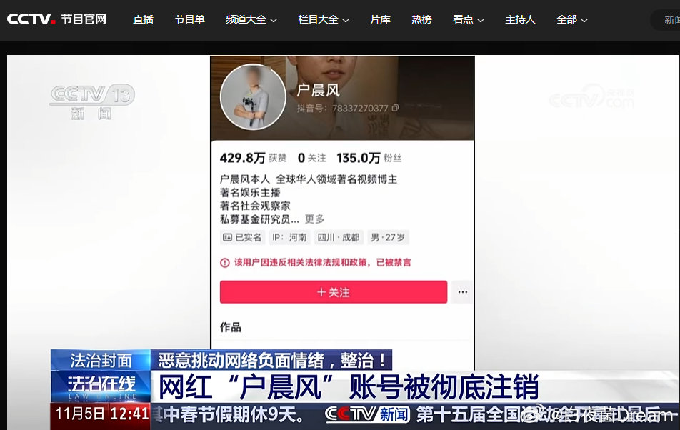 户晨风上央视新闻了,CCTV13法治在线。[哆啦A梦吃惊]