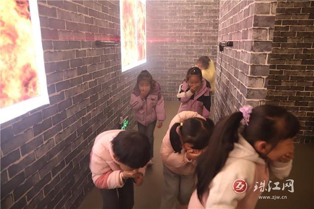 在消防体验馆,孩子们分批次沉浸式学习。跟着讲解员认识灭火器、消防栓,在VR场景里模拟扑灭家电火灾,感受“与时间赛跑”的救援紧迫感;消防知识答题游戏中,大家踊跃举手;火灾疏散逃生模拟时,孩子们手捂口鼻、弯腰前行,认真练习自救动作。