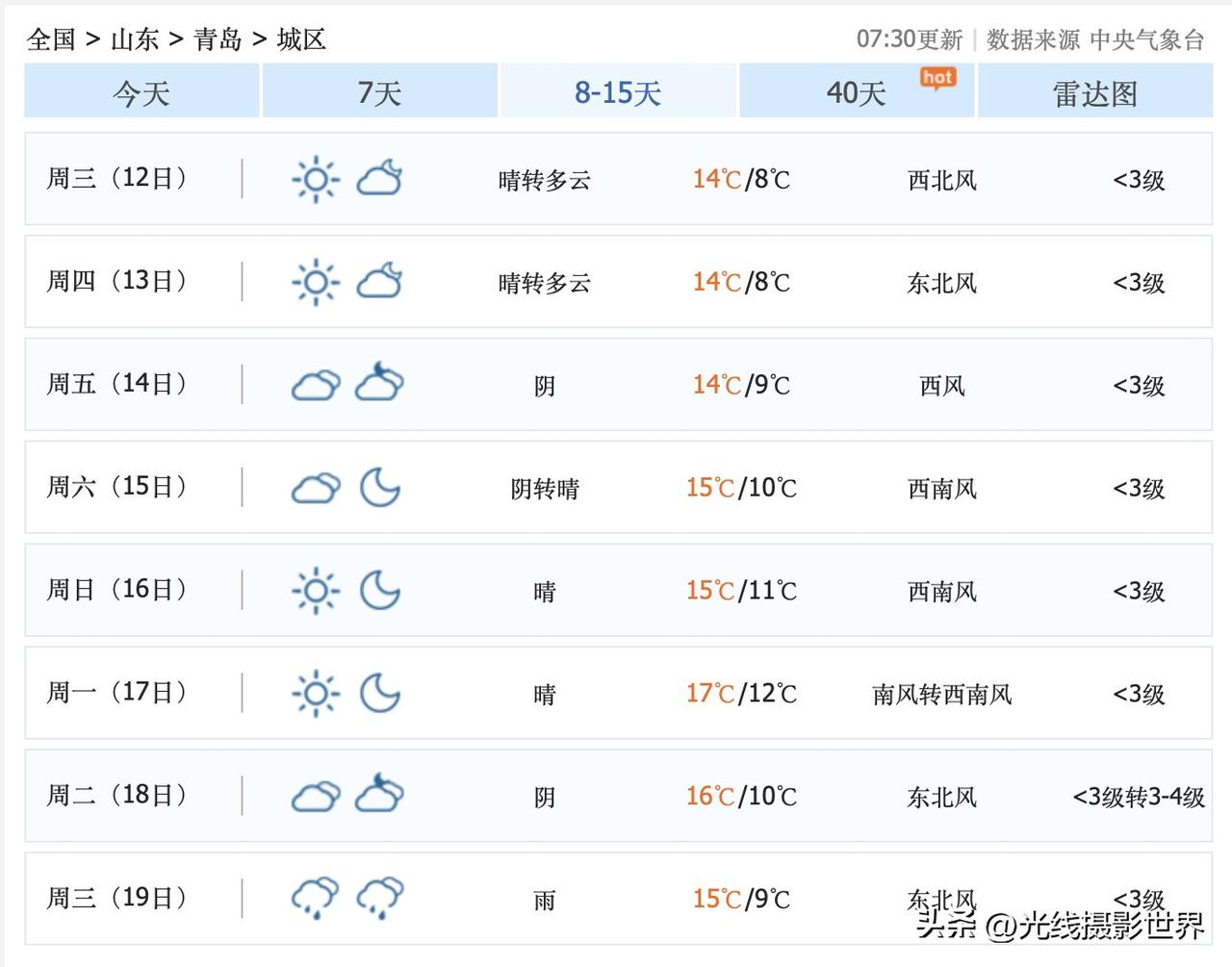 11月9日到12日,山东济南和青岛的天气不错啊!不知道秋色怎么样呢?!银杏树如何