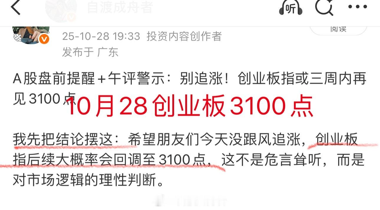 市场预测的核心价值在于风险规避与机会挖掘。昨日大盘尾盘翘尾反弹引发部分投资者乐观预期,但成交量未同步放大的技术缺陷,已提前提示反弹持续性存疑。值得注意的是,创业板指跌破3100点的预判最早于10月28日提出,今日如期兑现。