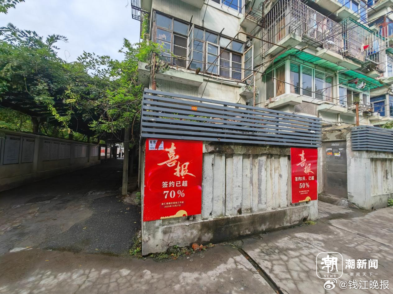 这两天,该小区正在进行搬迁的签约工作,现场到处贴着海报,显示截至10月27日,小区已经有70%完成签约。