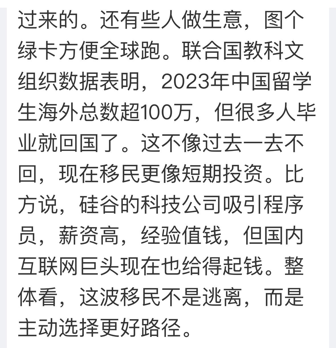 出国移民,都是各有各的原因,中国奉行自由往来的政策,出国不等于叛国,也不是说不爱国,张维为就说过,越出国的人越爱国。很多人移民以后,都保留中国国籍,宁肯长期拿永居证,也不办理公民身份,就是喜欢红彤彤的中国护照。