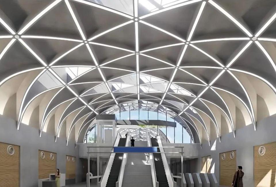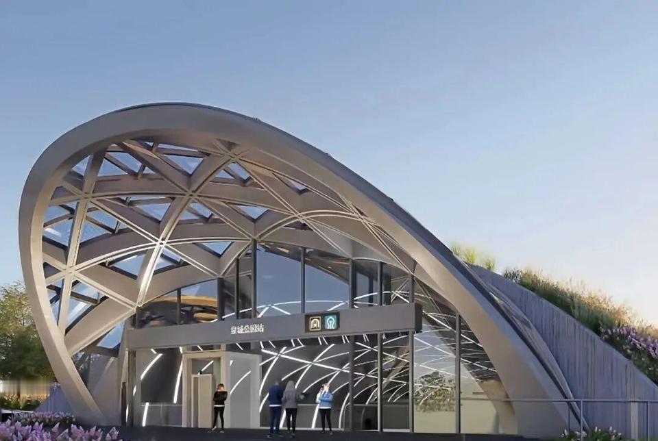 效果图出炉,济南地铁四号线泉城公园站应该是济南最美的地铁站了吧。 我记得济南地铁四号线是半埋式地铁站,即一半在地上一半在地下。施工也采用明挖的方式吧。 泉城公园站在经十路那边有两个出入口,北边有一个出入口。南北出入口同时能够承担过街地下通道的功能。 不过呢,这种站好看是好看,但维护起来还是比较麻烦的。