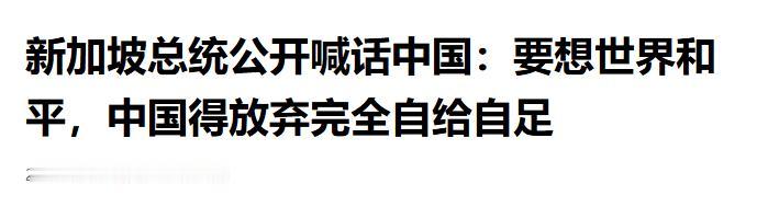 新加坡总统罕见发声中国:若想全球和平,中国必须放弃一样东西!在一个各国都小心翼翼处理言辞的时代,新加坡领导人如此直白地对中国提出要求,确实不常见。他提出的那个“东西”,听起来也颇为抽象——“过度的自给自足政策”。 2025年10月15日,新加坡总统尚达曼在华盛顿IMF会议的佩尔・雅各布森讲座上发言,主题为《可能性的时代:重塑经济秩序与共享愿景》。 他称中国应放弃“过度自给自足”,保持与美欧等科技体的互依,避免全球体系割裂。其背后是新加坡依赖中美贸易,担忧脱钩冲击自身,且想推动多边主义、防止全球秩序分裂。  要知道新加坡仅735平方公里,无任何资源禀赋,立身之本全在马六甲海峡的地缘优势。这条全球贸易“主动脉”承载着近1/3海运贸易、半数以上石油运输,1/3货运船必经此处。 新加坡顺势建成航运中转站,2024年港口处理4112.4万标箱,90%属转口贸易,其中绝大多数是“中国制造”,且穿海峡的船只六成挂中国国旗。 借航道便利,它又成世界级炼油中心,日加工原油约140万桶,还靠樟宜基地等保障航线安全。从货物中转到能源加工,说到底都是靠地缘吃饭。 数据更直白:中国直接贡献了新加坡海运业7%的GDP,支撑起17万从业人员的就业,等于其海运半壁江山都由中国市场托举。 而且尚达曼劝中国放弃自给自足时,新加坡自己正拼命冲刺“自给自足”,从80%淡水依赖马来西亚,到靠“四水龙头战略”将自给率提至六成,目标2045年完全自主,这种双重标准恰暴露了其核心诉求:只许自己抓安全底牌,不许别人护生存底线。 若真为全球和平计,劝美国放弃技术封锁远比劝中国有用。美国《芯片法案》投入520亿美元却收效甚微,台积电亚利桑那工厂运营成本比台湾高30%,生产的5纳米芯片贵5%到20%,最终只能涨价转嫁成本。 并且最荒诞的是美国技术封锁陷入“供应链反噬”:ASML光刻机离不开中国钻石粉,英特尔因短缺导致芯片产能仅达预期60%,高通骁龙处理器推迟发布损失超15亿美元。 稀土领域更被动,美国加州矿山缺乏精炼能力,钇、钪等元素100%依赖进口,亚洲之外的年产量不足2000吨。 2025年推出的“出口管制50%穿透性规则”更成闹剧:亚马逊花1.1亿美元律师费核查交易,甲骨文因审核繁琐丢失订单,广东液化天然气接收站险些断供粤港澳大湾区30%用气,最终美国被迫暂停规则一年。 这些事实都证明,破坏全球产业链的根源是美国的单边封锁,而非中国的自保策略。 中国的自给自足从来不是主动封闭,而是被现实倒逼的选择。早在上世纪五十年代,巴黎统筹委员会就对中国实施2100种物资禁运。 2018年中兴因断供险些倒闭,2020年ASML光刻机被限制出口,一次次教训让中国明白“命脉不能受制于人”。如今中国粮食年产突破1.4万亿斤,口粮自给率100%,谷物自给率95%,能源自给率稳定在80%以上,这些数据绝非“过度”,而是14亿人口的生存底线。 光伏产业更能说明问题:2006年95%依赖进口,华陆公司突破冷氢化技术后,不仅成本降低95%,更实现多晶硅、组件产量全球第一,既保障了自身能源安全,又供应全球市场。 更关键的是,中国从未将自给自足与开放对立。特斯拉上海第二工厂扩产、巴斯夫湛江基地投建,外资企业仍在共享中国市场红利。 石油进口虽有依赖,但已构建多元化渠道:俄罗斯成第一大来源,占比19.3%,中东份额26%,伊朗占比15%,加上1.69亿桶新增储备设施,形成了“自给+多元进口”的安全网。 这种“自保与合作并行”的策略,恰恰是动荡世界里的稳定器,中国若放弃自给,美国一旦加码封锁,全球制造业将陷入瘫痪,这才是对和平的真正威胁。 新加坡的焦虑本质是“骑墙困境”:政治依附美国、经济依赖中国,中美贸易占其出口六成,供应链分裂直接冲击其转口贸易。 但小国的平衡逻辑不能套用于大国,中国必须兼顾14亿人的安全与全球合作,这种平衡术远比站在自身利益上指手画脚更接近和平本质。 真正的全球和平,从来不是靠谁放弃安全底线,而是靠美国停止技术围堵,靠各国尊重彼此的生存理性,这才是尚达曼该真正呼吁的核心。
