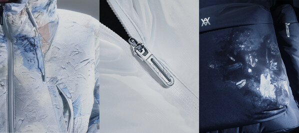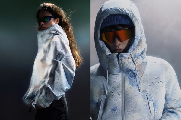 同时,联名系列亦纳入迪桑特两款具有代表性的产品——ALLTERRAIN系列"水沢"羽绒服与CREAS硬壳夹克。水沢羽绒服采用SEAMSEAL非缝纫热压胶贴合技术,以热熔贴合工艺替代传统缝线,提升雨雪天气羽绒服的可穿性和舒适度,并配合HEATNAVI科技,提供充分保暖。CREAS硬壳夹克则延续品牌对功能与设计平衡的探索,采用立体剪裁与防护性面料,兼顾运动与城市场景的多重穿着需求。两款产品均融入DanielArsham的代表性视觉元素,以更具艺术感的方式诠释运动装备的现代形态,为经典单品注入新的创作创意与收藏价值。