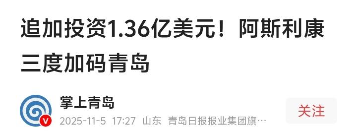 青岛高新区再掀外资风暴!阿斯利康1.36亿美元三度加码中国药谷,全球呼吸疾病患者迎来“青岛制造”曙光 (来源:综合青岛日报、观海新闻、青岛新闻网及网络公开报道) 初冬的青岛,海风裹挟着机遇的气息。进博会现场一笔1.36亿美元的追加投资协议,让这座滨海城市再度站上世界生物医药产业的聚光灯下。全球制药巨头阿斯利康的第三次增资,像一剂强心针,不仅扎进青岛高新区的土壤,更扎破了外界对“外资撤离中国”的刻板印象。当某些人还在争论产业链转移时,聪明的资本早已用行动投票——这里的热土,藏着关乎人类健康的未来密码。 这片80亩的土地,即将崛起一条全新的灌装生产线。流水线上流动的不仅是“倍择瑞®令畅®”等呼吸药物,更是无数慢阻肺、哮喘患者自由呼吸的希望。从2027年破土动工到2030年投产,四年的等待背后,是跨国企业对中国市场持久韧性的精准预判。当全球每十秒就有一人死于呼吸系统疾病时,青岛制造的药瓶里,装的其实是生命的秒针。 三度追加投资的背后,是一场双向奔赴的信任博弈。阿斯利康在华年营收超540亿美元的版图上,青岛工厂已成为其全球供应链的关键落子。而青岛高新区“与企业共成长”的服务理念,从专班对接至审批提速,让“当年签约、当年拿地、当年开工”成为常态。这不是简单的政策优惠竞赛,而是一座城市与企业在时代浪潮中结成的命运共同体。 放眼中国沿海经济带,青岛正以“生物医药产业高地”为支点撬动全局。179家世界500强企业在此落下412枚棋子,阿斯利康的吸入气雾剂基地更创下跨国药企在山东制造业项目“零的突破”。当全球医疗资源在疫情后重塑分配时,青岛的产业生态用“十年磨一剑”的耐心,等来了厚积薄发的历史时刻。 这背后折射的,是中国市场从“世界工厂”到“全球创新实验室”的蜕变。阿斯利康将全球最大气雾剂生产基地放在青岛,看中的不仅是区位优势或产业基础,更是中国在呼吸疾病领域庞大的临床需求与迭代速度。当“本土化研发”遇上“全球化品质”,药瓶上的“Made in Qingdao”标签,正在成为国际医保目录里的品质认证。 对于普通民众而言,这场投资的意义远超经济数据。当亲人因呼吸疾病夜不能寐时,当雾化药液成为生活必需品时,本土生产的进口药意味着更稳定的供应、更可及的价格。从实验室到药柜的距离每缩短一公里,就可能为某个家庭抢回更多团圆的时光——这才是产业升级最动人的注脚。 资本的嗅觉从来敏锐。阿斯利康的连续增资像一块试金石,验证着中国高水平对外开放绝非口号。在青岛高新区,外资企业圆桌会议机制与服务企业统一平台正形成“双轮驱动”,用法治化营商环境消解跨国公司的后顾之忧。当某些地区还在为短期政策内耗时,这里已搭建起“全要素保障、全周期服务”的长期主义范式。 站在更大的时空维度看,这场合作宛如一个隐喻:人类对抗疾病的征程需要全球智慧,而中国正在从“参与者”蜕变为“策源地”。当青岛工厂的呼吸药物沿着“一带一路”飘洋过海,当中国创新药企与跨国巨头从竞争走向共研,我们或许正在见证一个东方医疗科技新极的崛起。