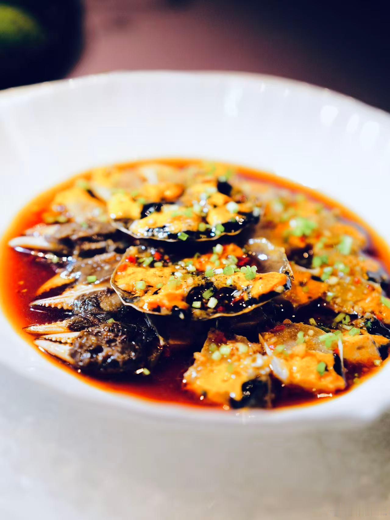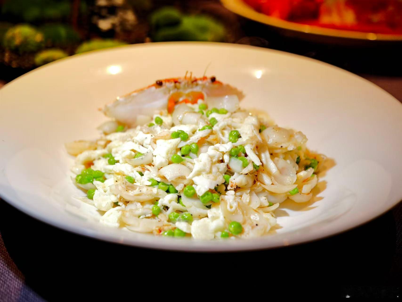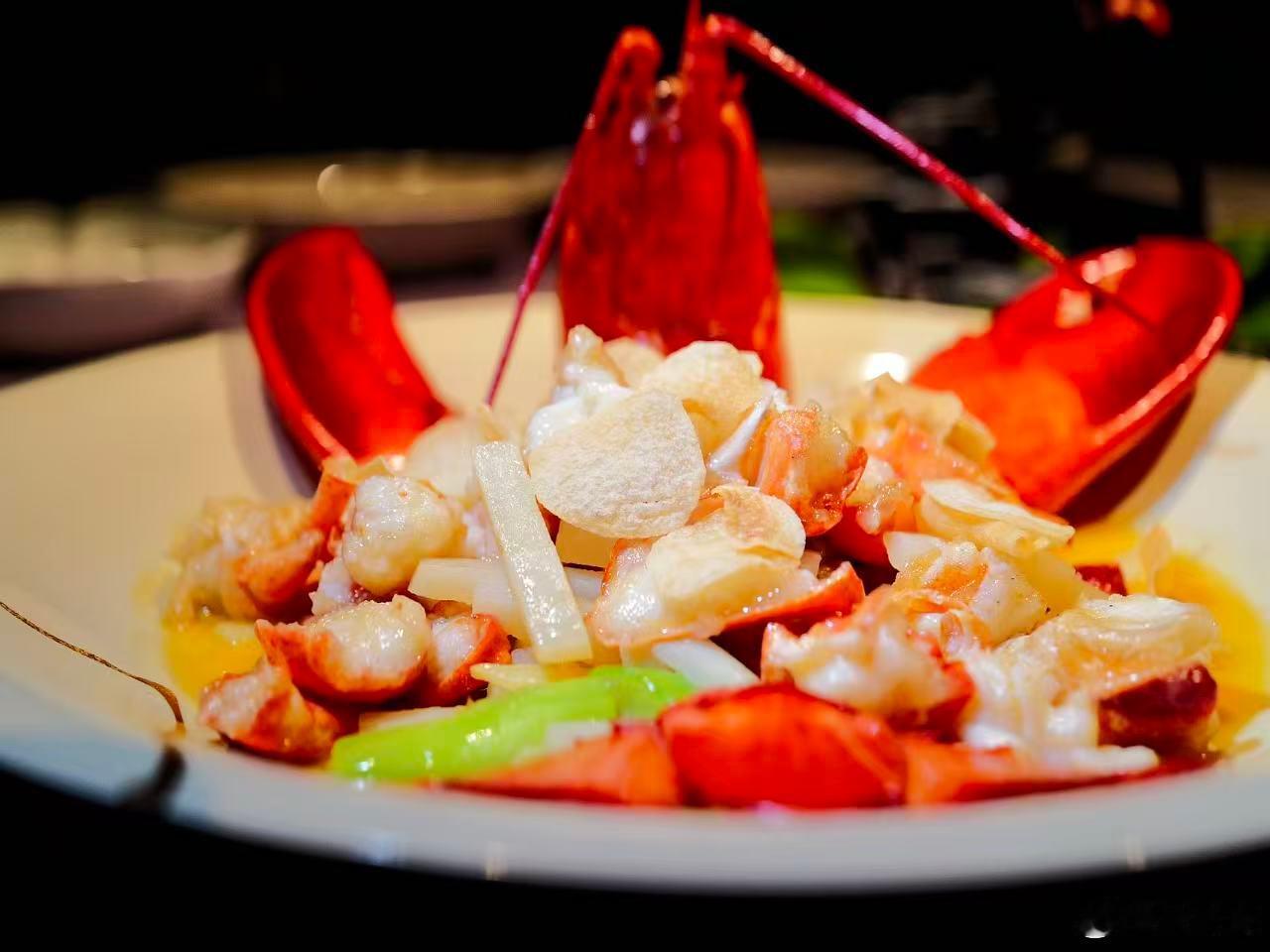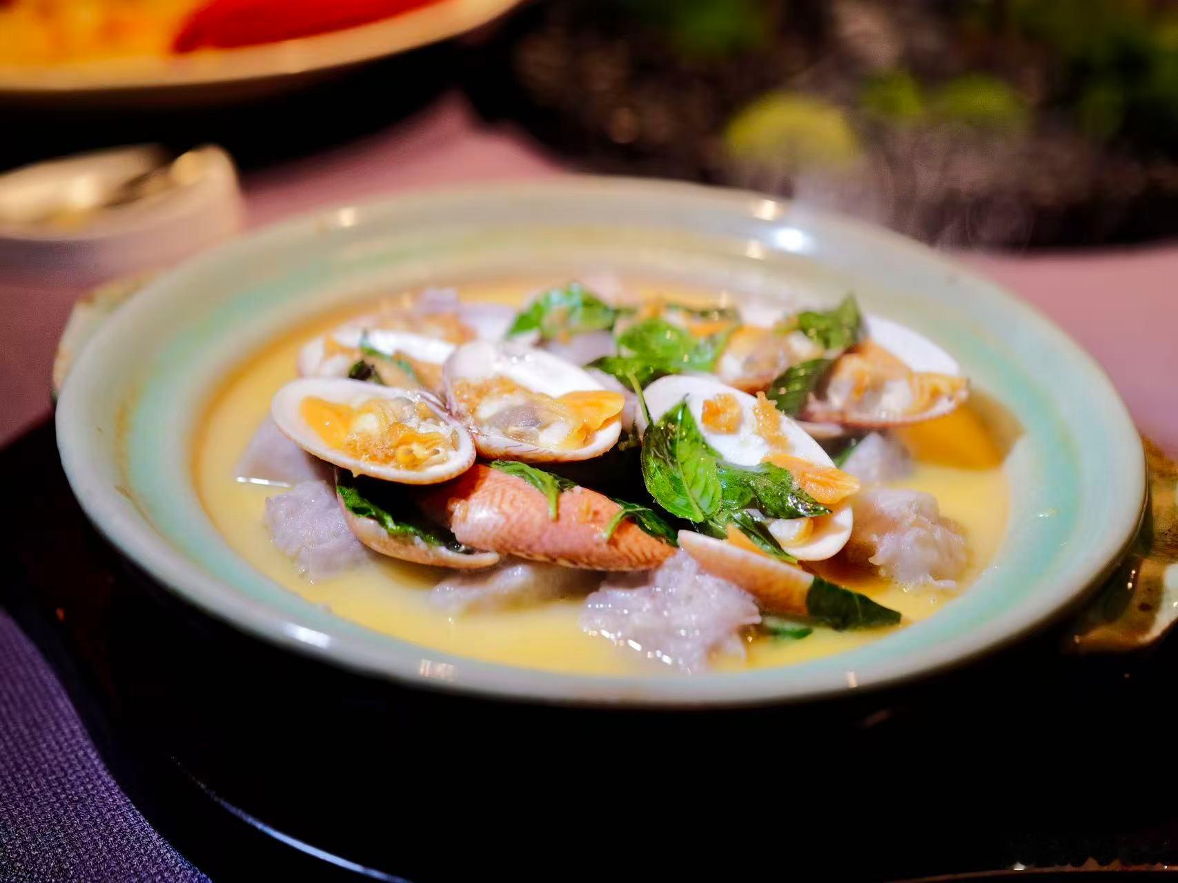 江苏的海刀鱼用潮汕香酥的方式呈现,大闸蟹做成潮汕的美味“毒药”生腌;闽南山区的山苏叶拌河源车田村的鲜腐竹,食材的优选精确到一个村,真的厉害;陈皮水鸭、柚皮焖龙趸、花甲王乐昌炮弹芋头,蟹粉沙地萝卜,新会、梅州、韶关地理标志物产齐聚;又搜罗了遵义的土猪,宁夏滩羊煲汤;甚至能吃到浓郁甜糯的蜜烤长白山林下参,蜂蜜都是当地野生的。
