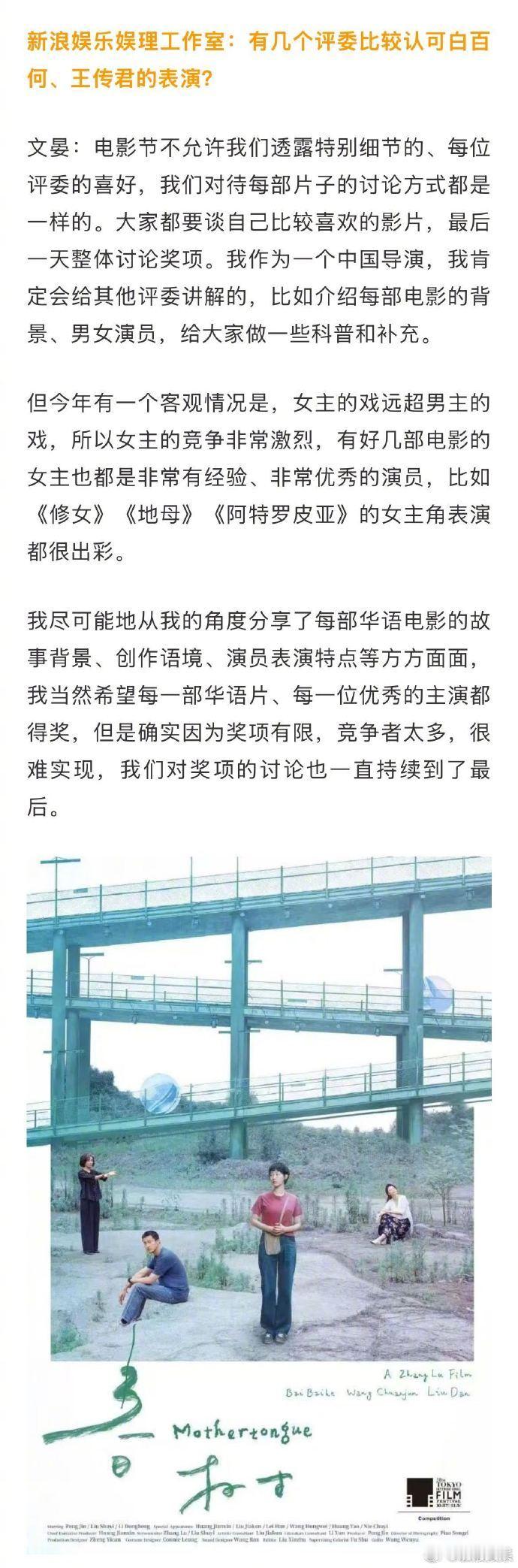 文晏导演回应东京电影节相关传闻文晏说不认识白百何王传君成为了东京电影节影帝,而在两天前网上就有传闻“沪圈要求文晏把东京男主给王传君,否则日后不投资她的电影”,加上白百何发了“还能这样操作…”,让传闻愈演愈烈,新浪娱乐采访到了因为东京电影节颁奖而处在风口浪尖上的文晏导演。