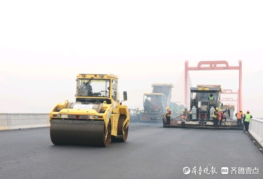 11月3日,随着最后一层沥青铺装并碾压到位,济滨高铁济阳黄河公铁两用特大桥公路沥青混凝土路面施工完成。