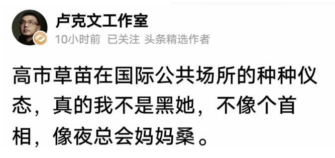 卢克文一句话,直接把高市早苗推上舆论火山口!一句“她不像日本首相,倒像夜总会妈妈