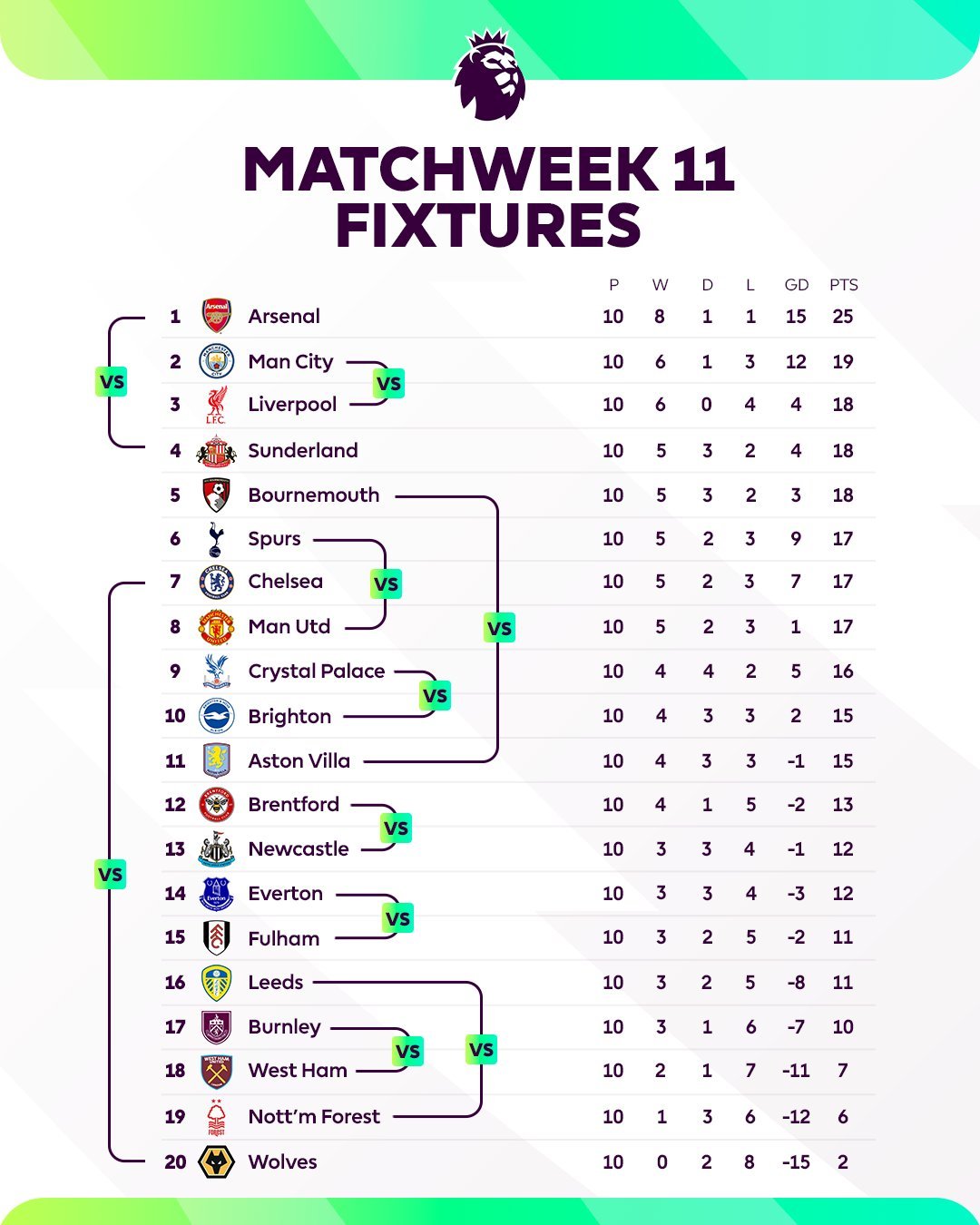英超第11轮对阵情况,切尔西最稳[偷笑]