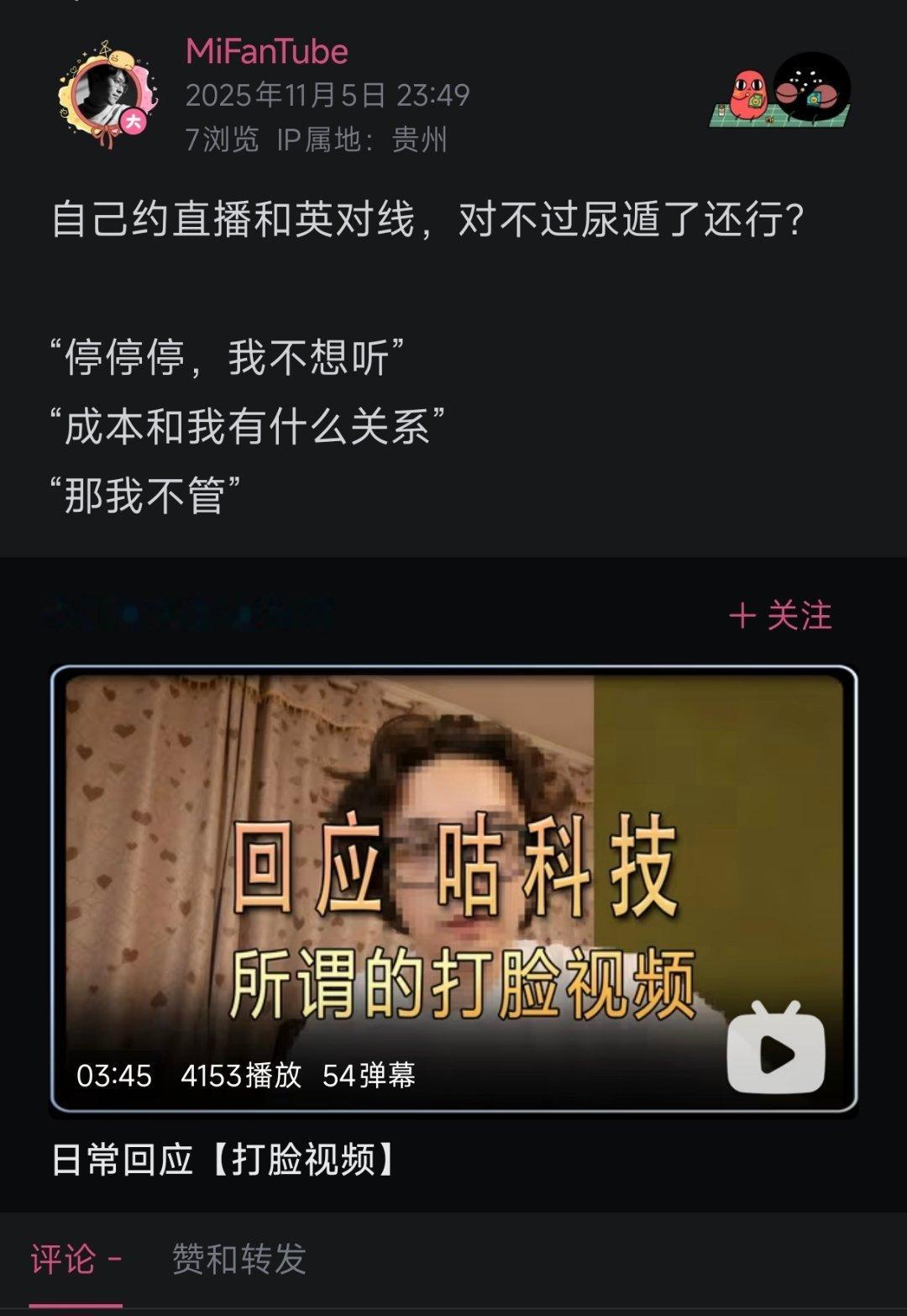 尿遁可还行,自己要求直播连麦,然后说着说着红温了就尿遁。连一声再见都不肯说,毫无